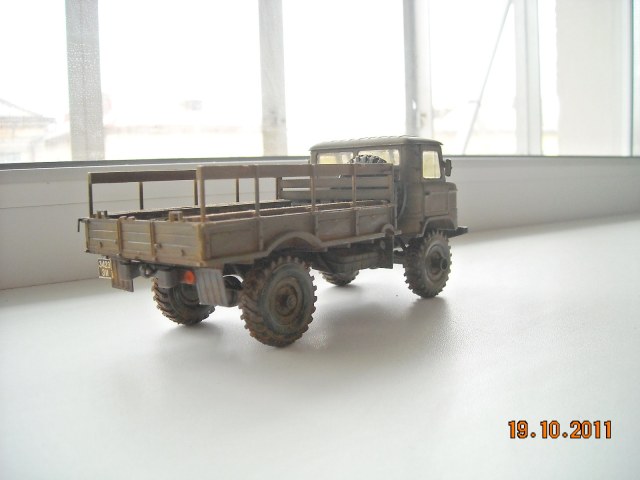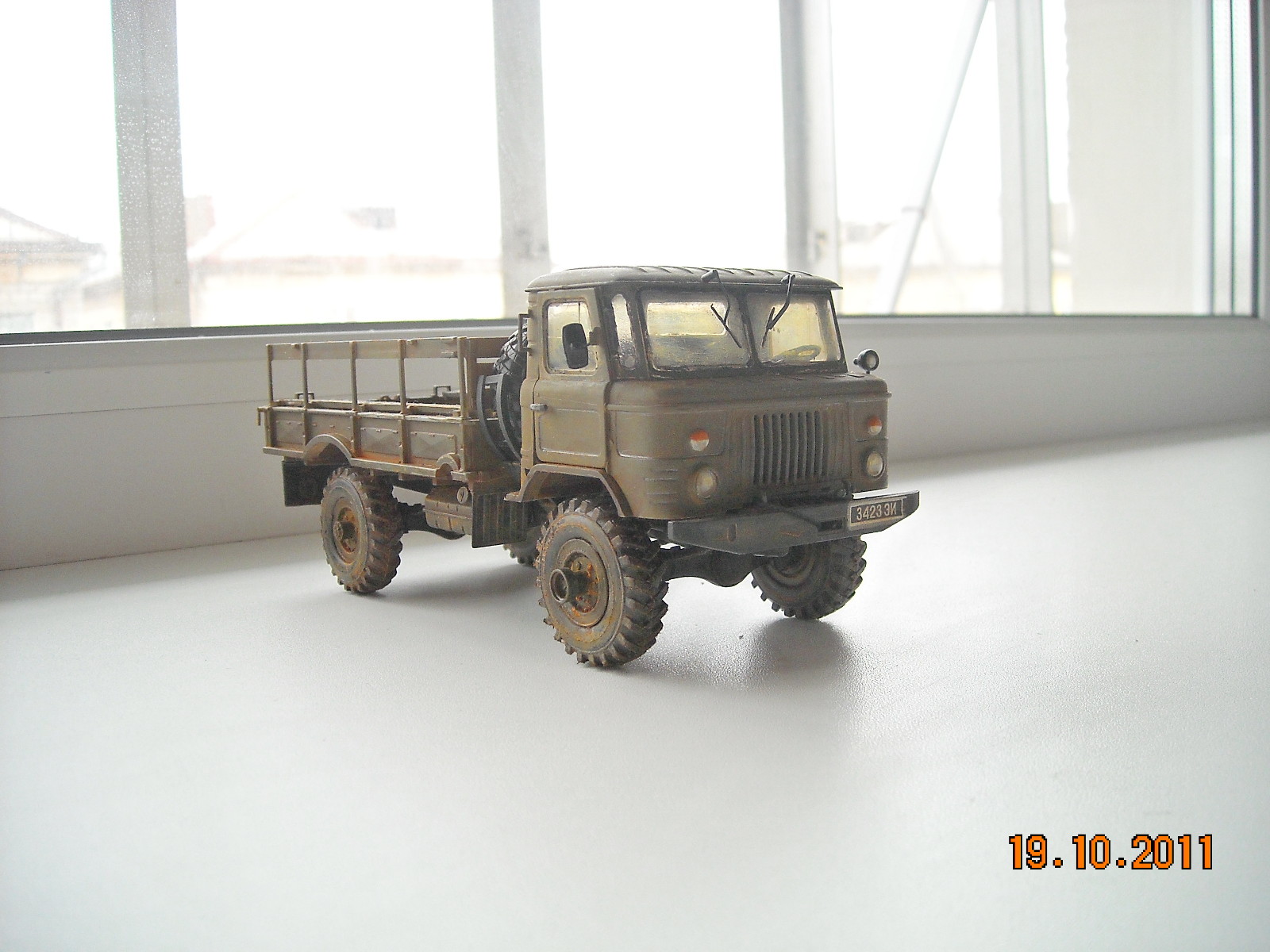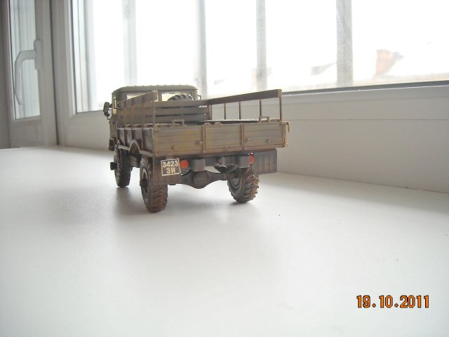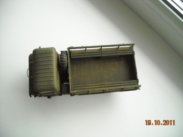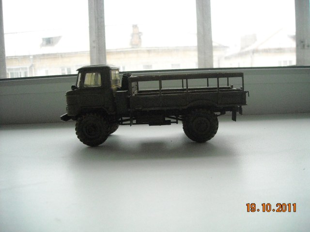 Представляю свой ГАЗ-66, начало он положил еще в 2010 тогда была готова только кабина. Покрасил Тамией XF-62-основной цвет, смывка акрил ZVEZDA и покрышки маслом и акрилом. Сделал как чисто советский грузовик.