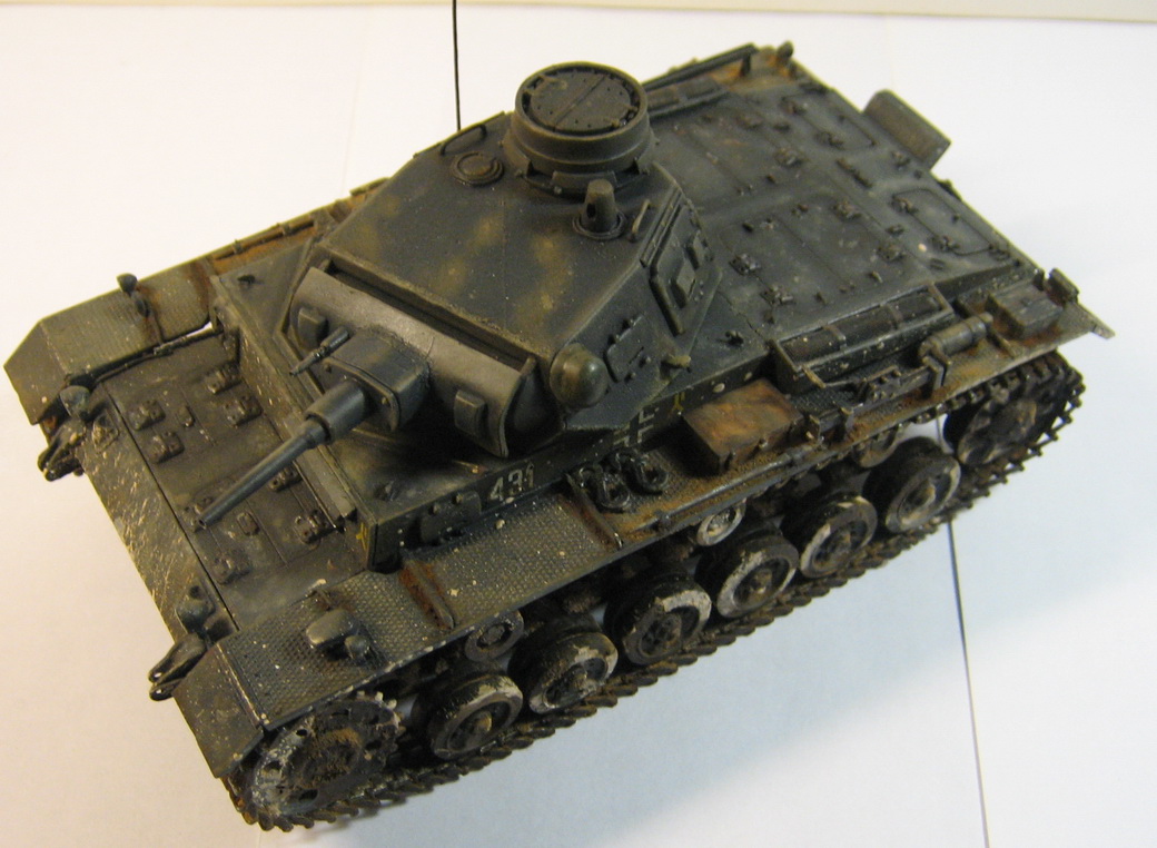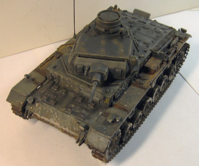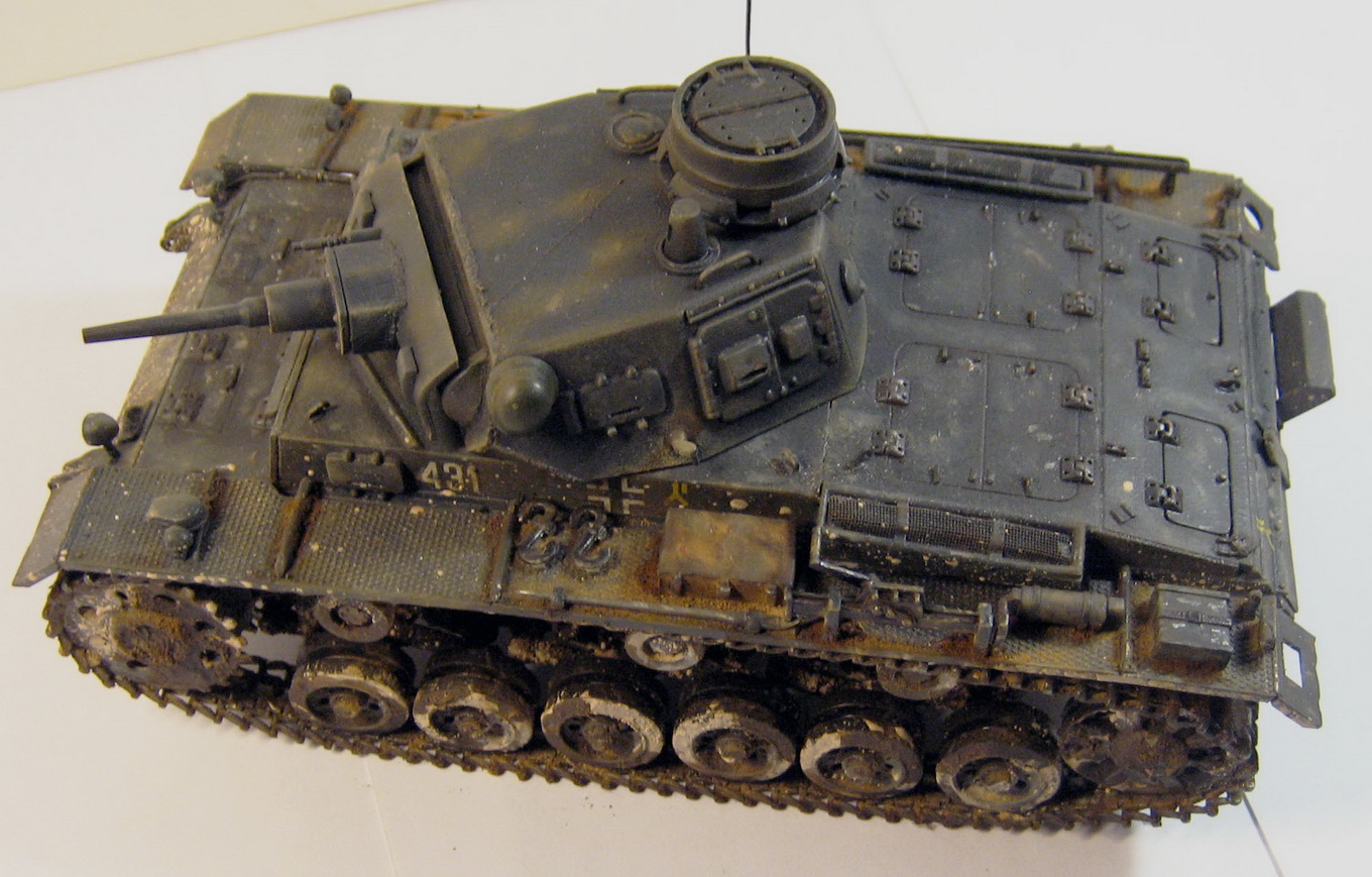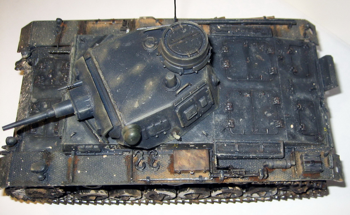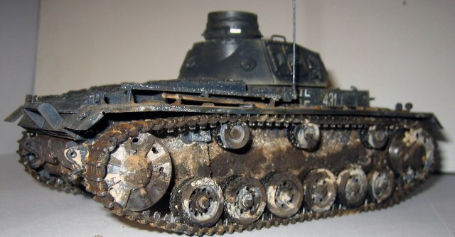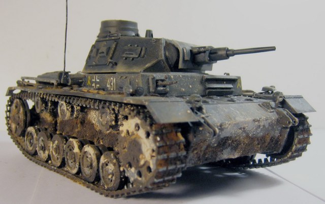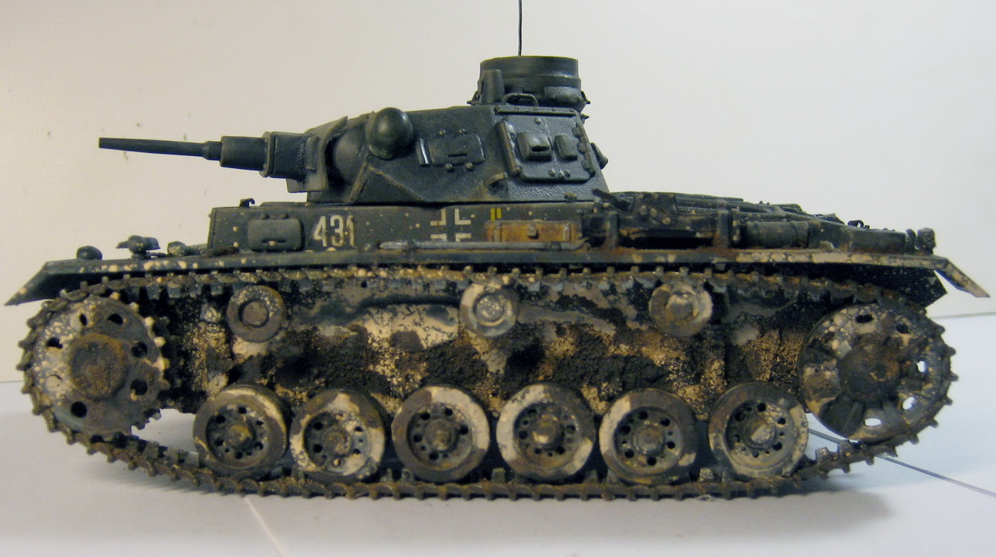 Сборка вся из коробки. Из доработок добавлены швы на башне да кое, где мелкие детали. Ствол пушки Aber, курсовой и спаренный пулемёты Modelpoint. Честно скажу, модель не очень понравилась, геометрия слабая, утяжины не чёткий рельеф достаточно много следов толкателей, пару раз хотел забросить её подальше, но всё, таки дожал. Хотелось сделать тройку, побывавшую под Москвой в 1941 году, а история прототипа гласит, что танки именно 2й дивизии докатились почти до Химок, в том числе и тройки. Окрас база Акан, фильтры MIG,тени Tamiyaи пастель, грязь гипс окрас грязи MIGфиксатор лак Акан. Вот, пожалуй, и всё, стволы пулемётов немного выдвинуты, жаль было такую красоту прятать. За ранее спасибо за уделённое внимание.