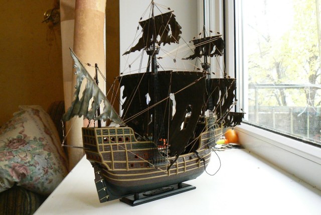 Очень красивый и ухоженный галеон после легкой стычки с косыми противниками ! (т.е.оченнь целый и ухоженный корпус и рваные паруса )В темноте очень шикарно смотрится !!!Но ведь Летучий Голландец - это призрак !!!!!!! И в ТАКОМ случае он должен ВЕСЬ выглядеть КАК ПРИЗРАК !(ДАЖЕ ДНЕМ )