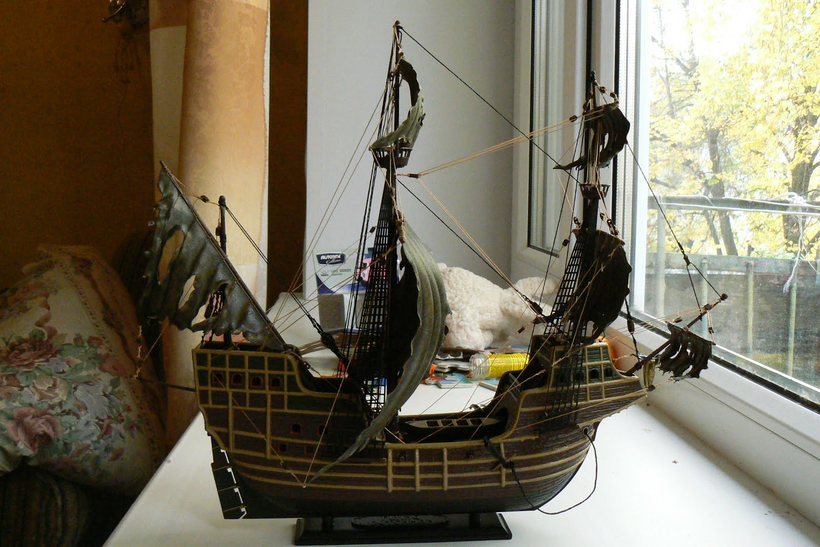 Модель понравилась! Матчасти касаться не буду. По окраске, все нормально. Паруса удались! Первая модель...задача верная,и выполнена, главное правильно собрать и покрасить. Тонировка будет уже со временем, когда разберетесь что к чему!