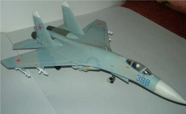 Вот решил выложить свой второй истребитель . Это мой первы "Су" второй на подходе . Сначала хотел купить "Русские витязи" но в магазине не оказалось. Что о модели собирать было легко но замазки ушло давольно много . Красил баллончиками от Тамии . Как смог подобрал краски . Основной цвет AS-26 , а камо TS-81, AS-5, все остальные мелки детали акрилом от Звезды . Модель не лучшая , но куда же без опыта.