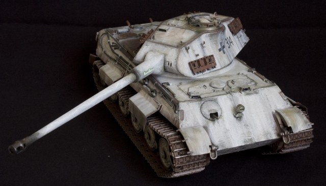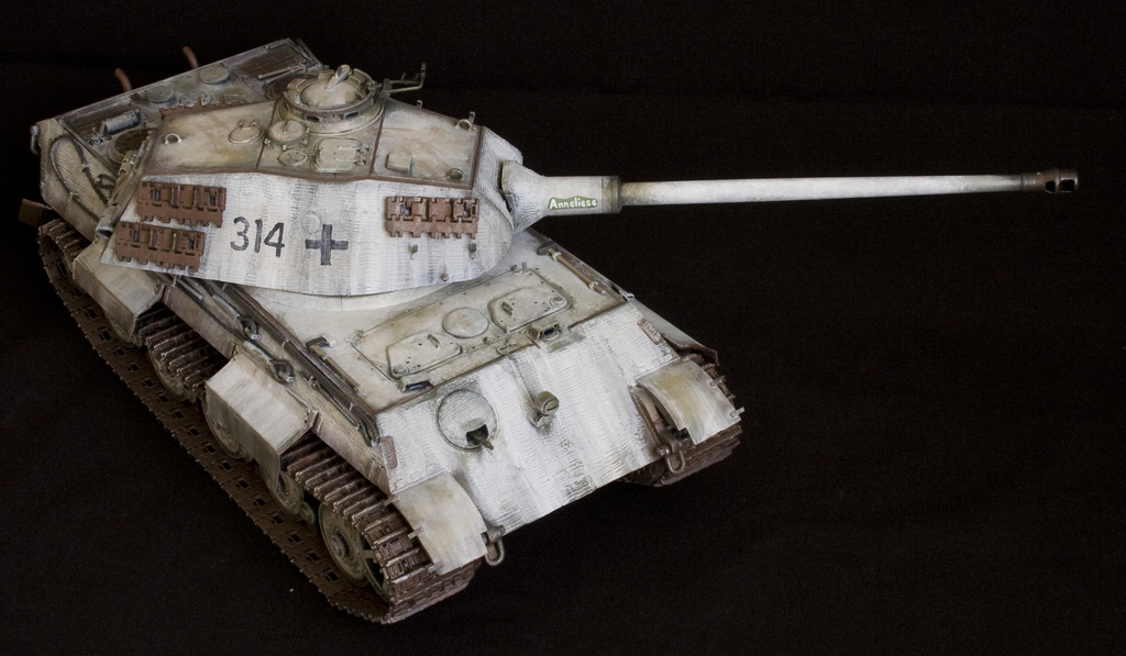 Представляю вашему суду замерзшего зимнего КоТэ, с башней порше. На этой модели попробовал сделать сам циммерит. Вроде как получилось...