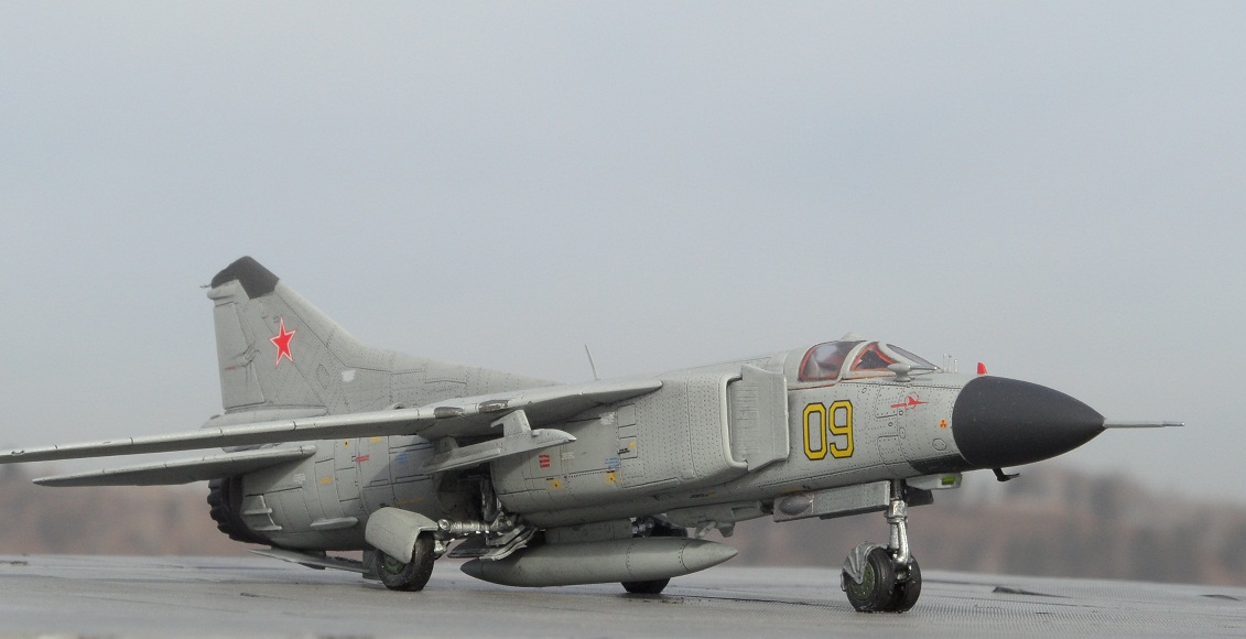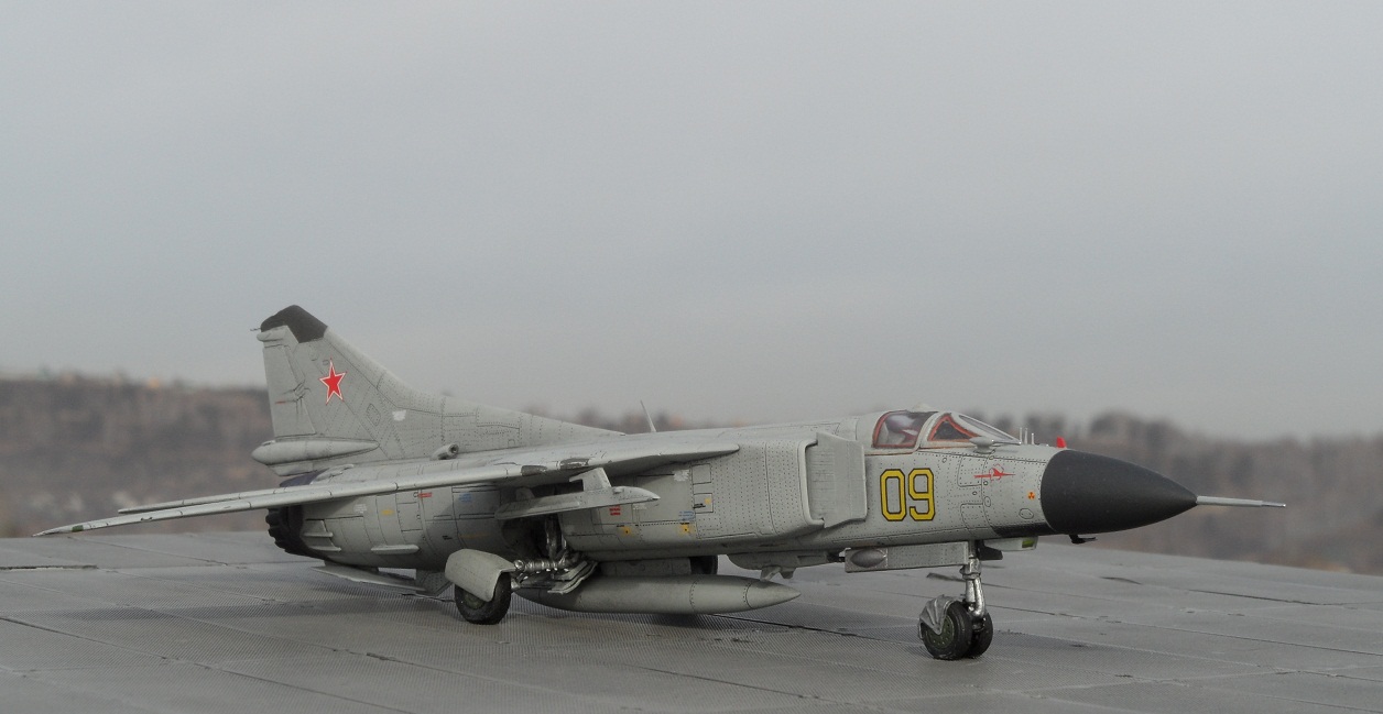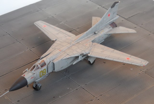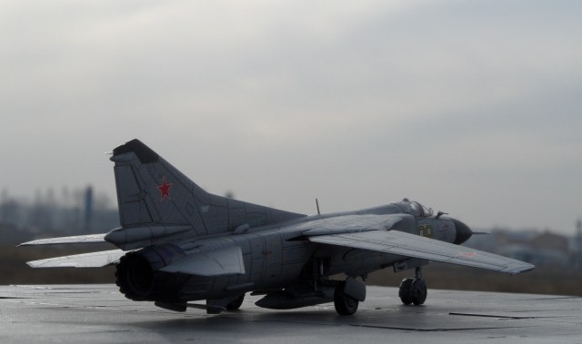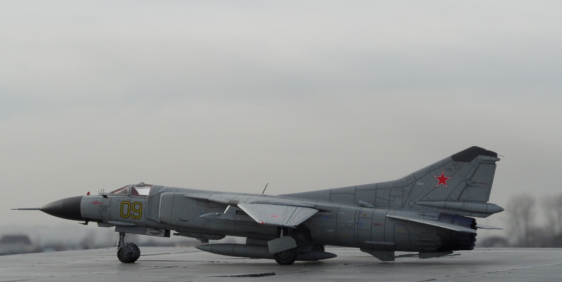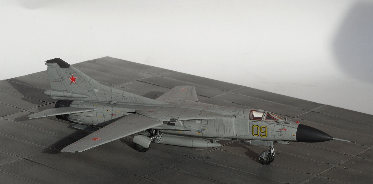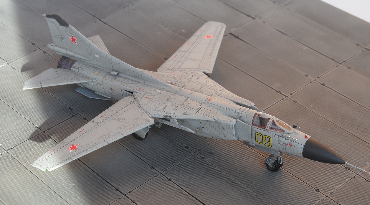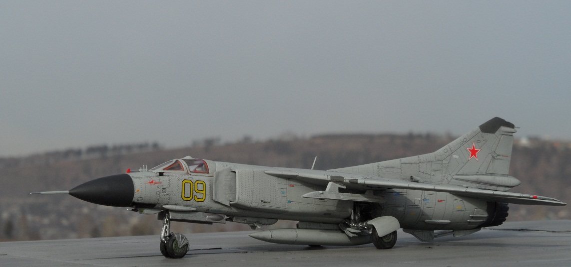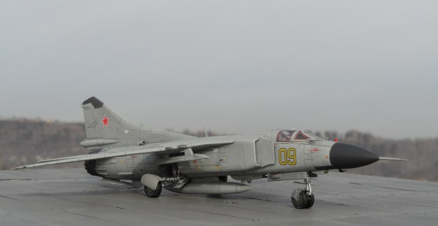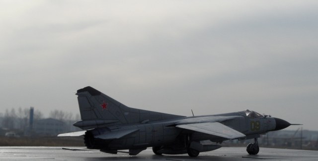 Соглашусь с коллегами - модель даже после аварии выглядит отлично. Только вот у меня вопрос, как у незнатока матчасти МИГов: а, что, "попа" так и должна проседать у 23-го???