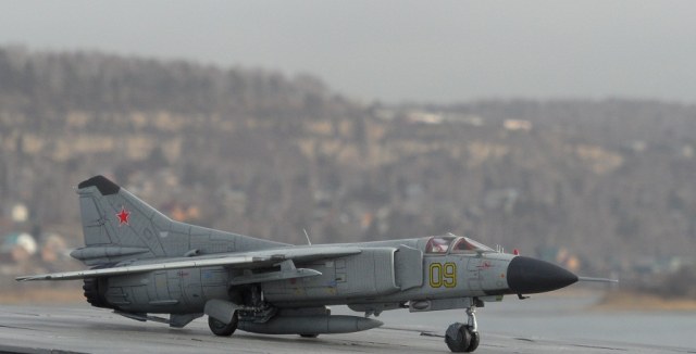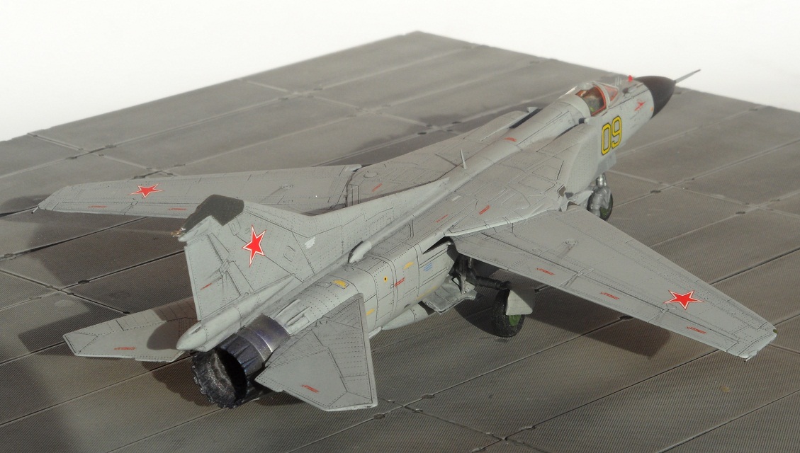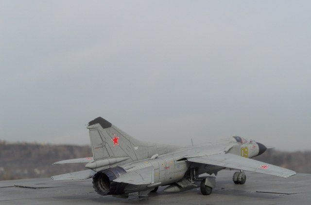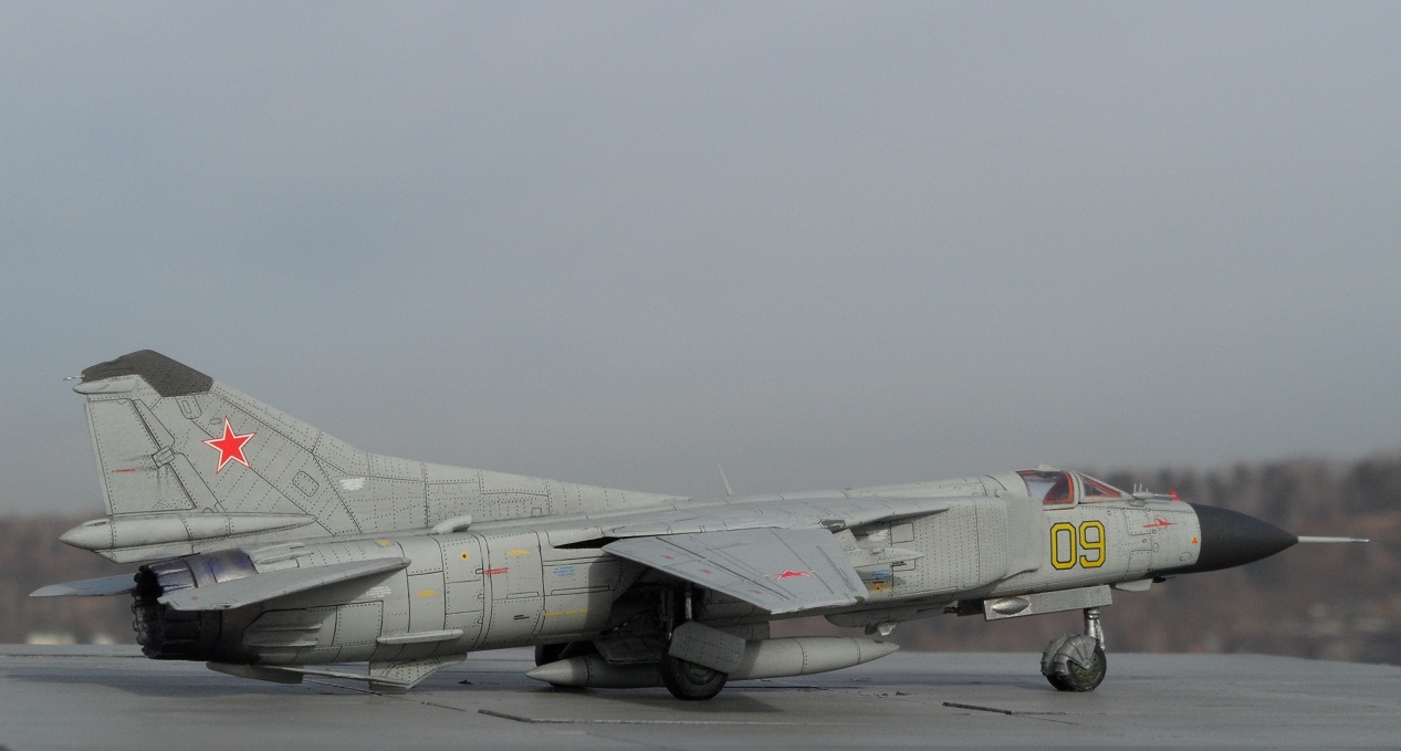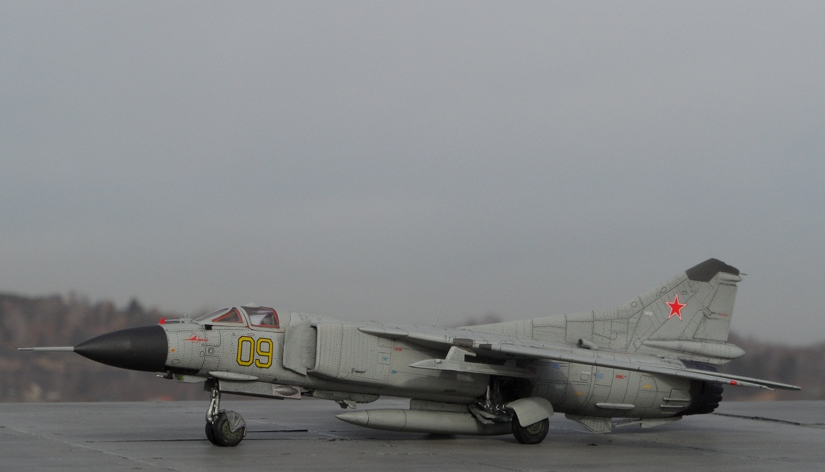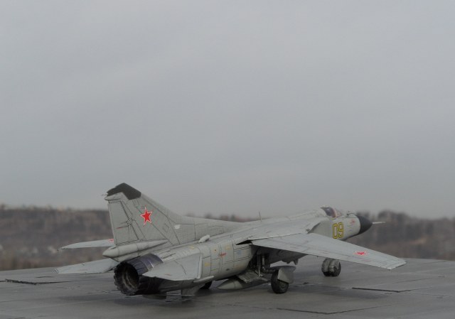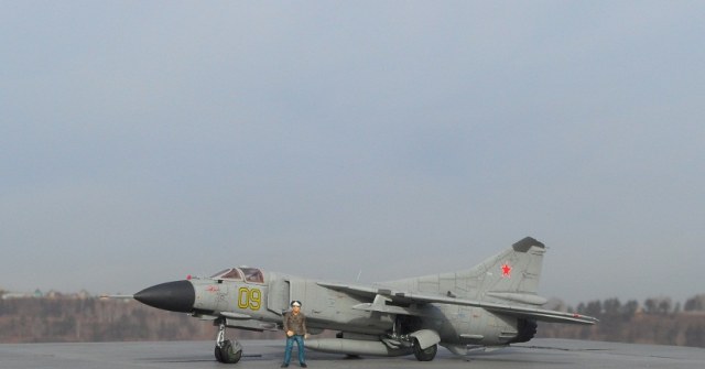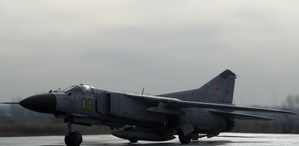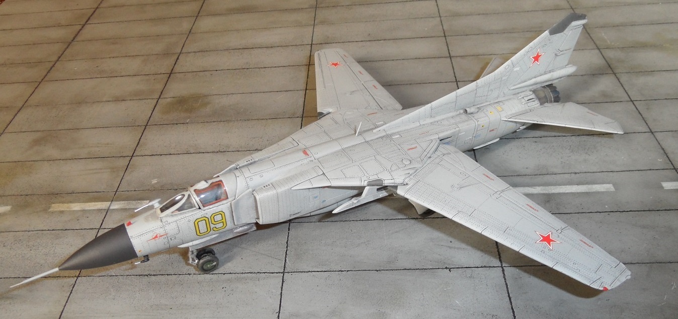 Соглашусь с коллегами - модель даже после аварии выглядит отлично. Только вот у меня вопрос, как у незнатока матчасти МИГов: а, что, "попа" так и должна проседать у 23-го???