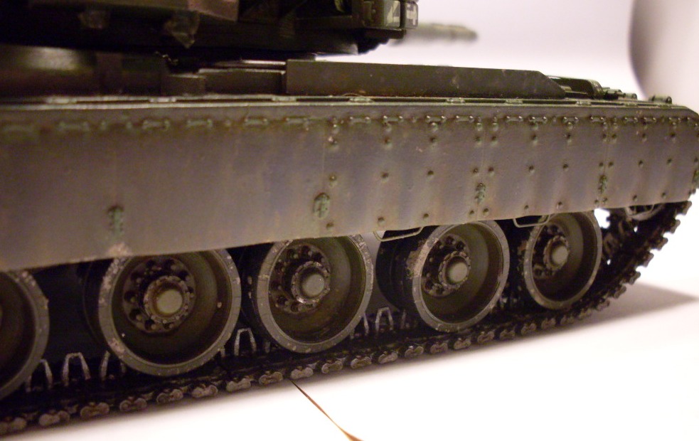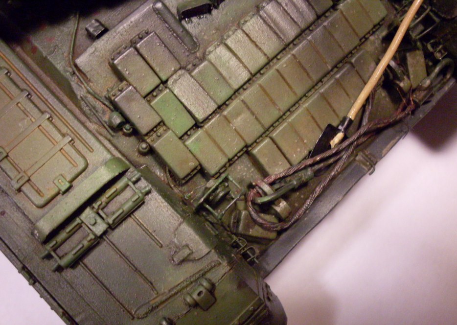 Окраска- TAMIYA акрил,АКАН акрил.Тонировка- масляные краски. Из дополнений ящики со снарядами, траки и катки -Мастерклуб,фара ЭЛЬФ.