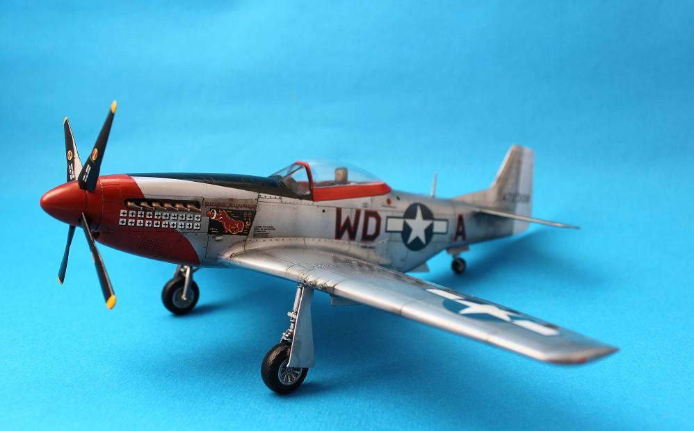 Стойки у мустанга все же немножко вперед выдвинуты. А то так, он буд то на костылях стоит. Фото прототипа стоило найти. И закрылки со створками шасси у Д на земле должны быть в выпущенном состоянии