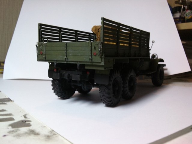 Фонари-признаю косяк, но видел и с оранжевыми-правда фото среди пальм))). огнетушитель-какой в наборе, крашен по инструкции. канистру отодвинул как смог. Волосатый трос попробую исправить.