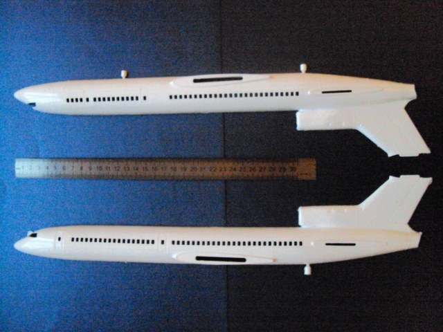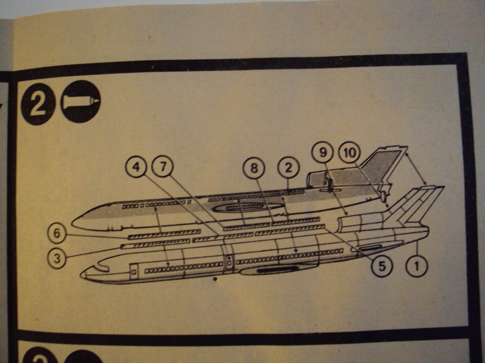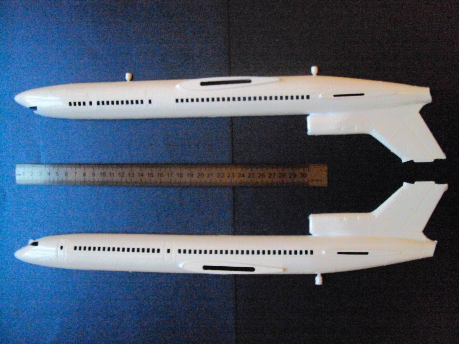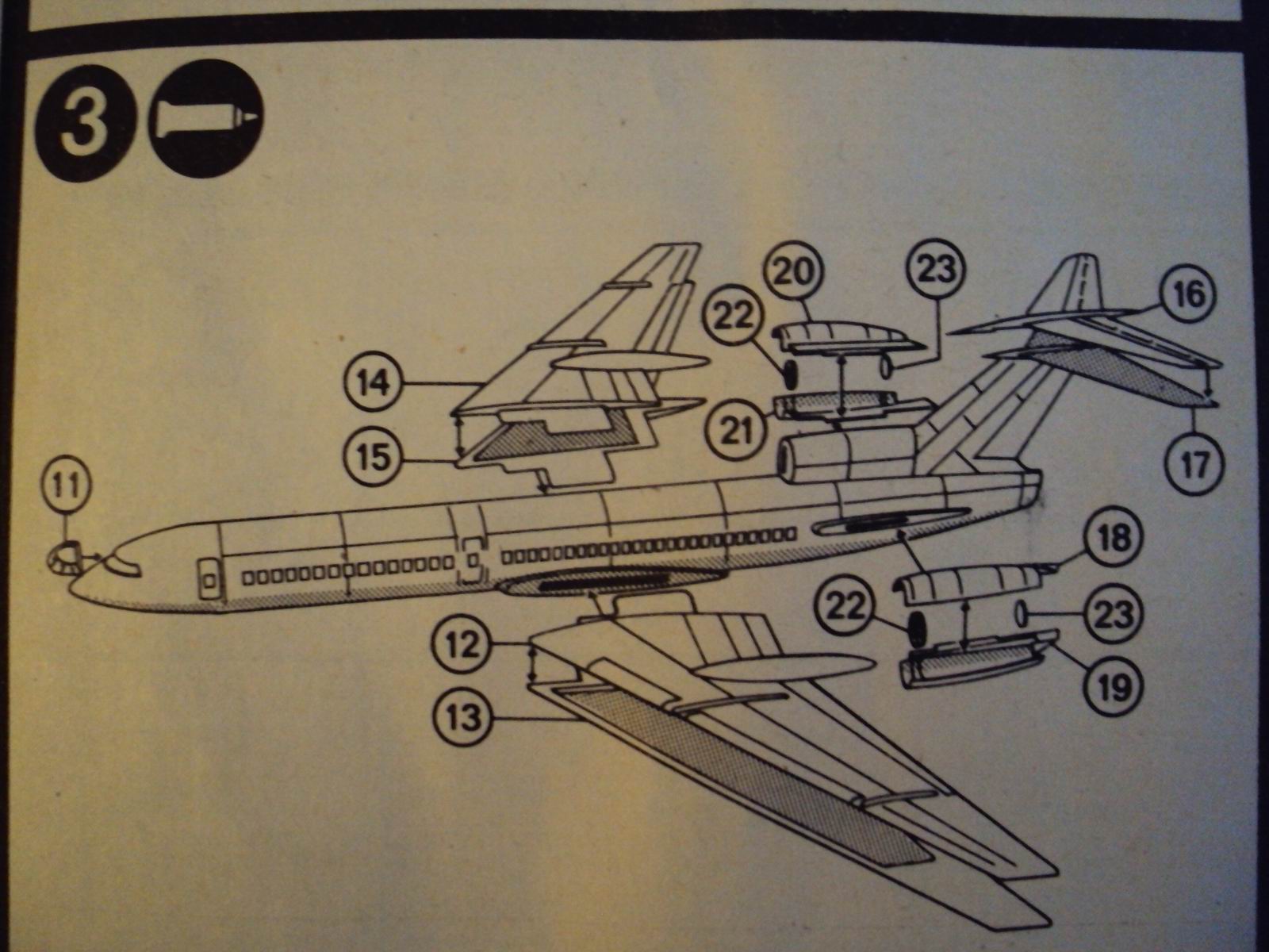 Самый распространенный и знакомый нам аппарат. Модель крупная, длина до 45 см. Набор стандартный, литники в трех цветах - белый глянец, черный, серебристый и прозрачное остекление, подставка. Подробная, пошаговая инструкция - схема. Деки - Аэрофлот СССР, клей (и тут испарился).
