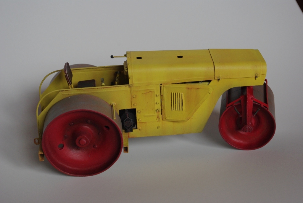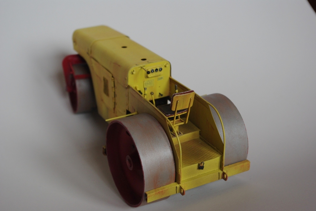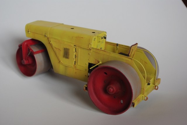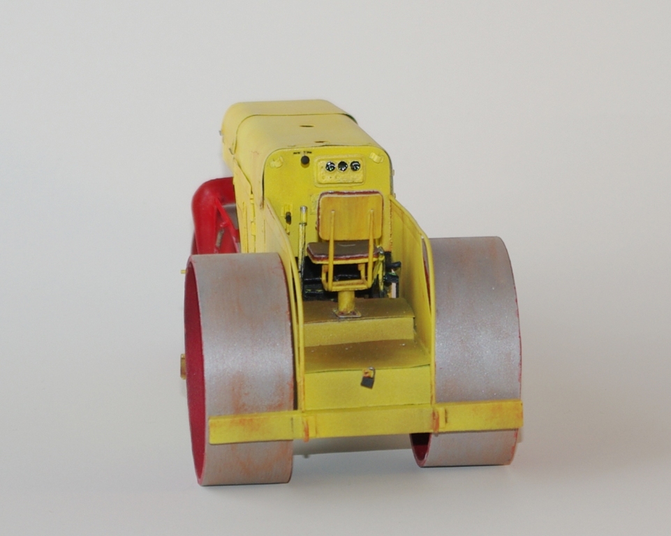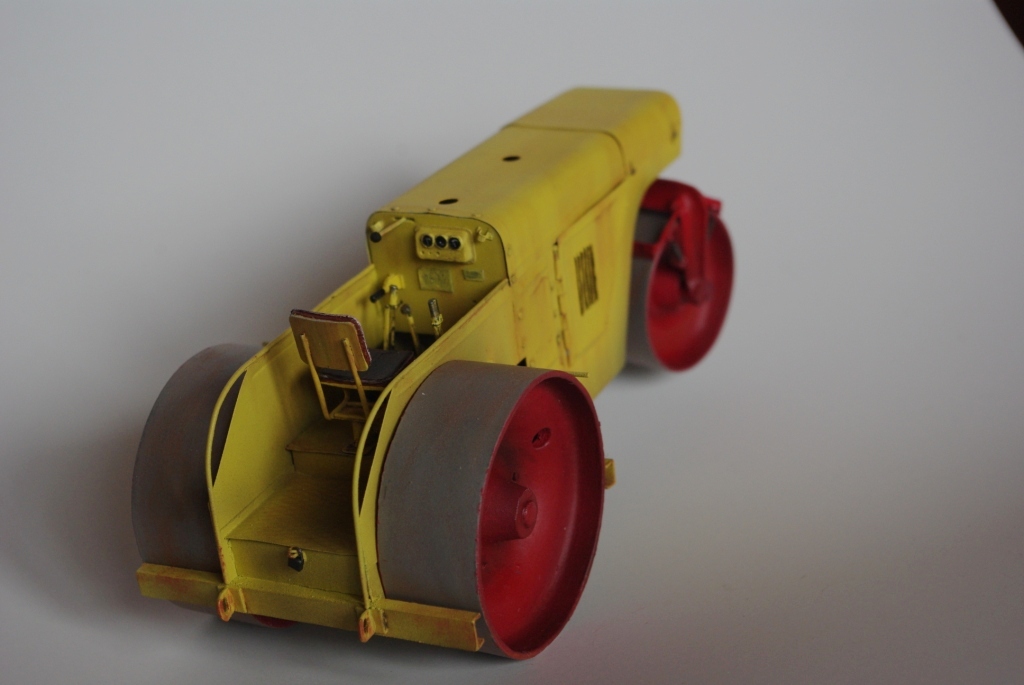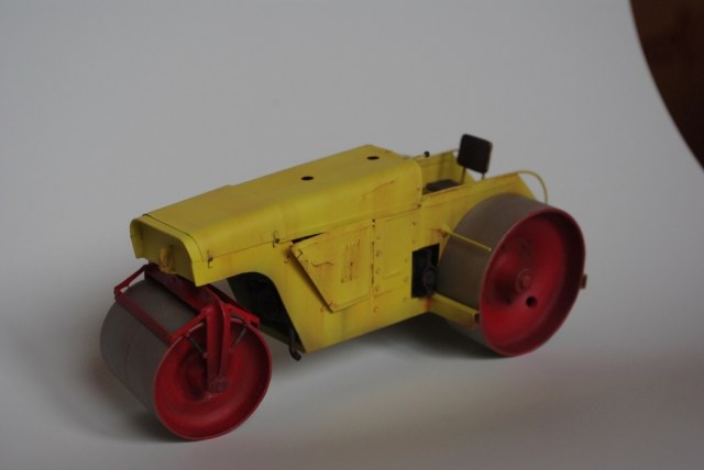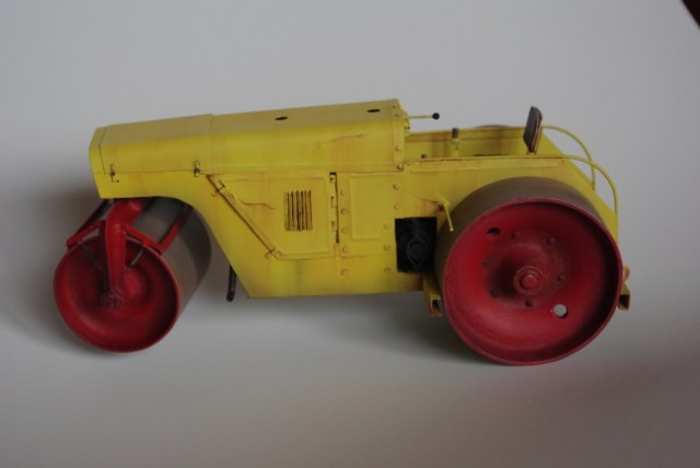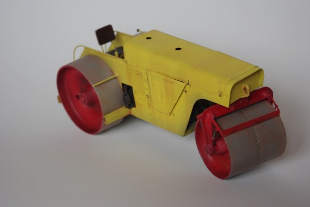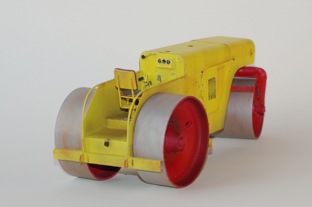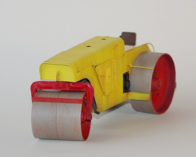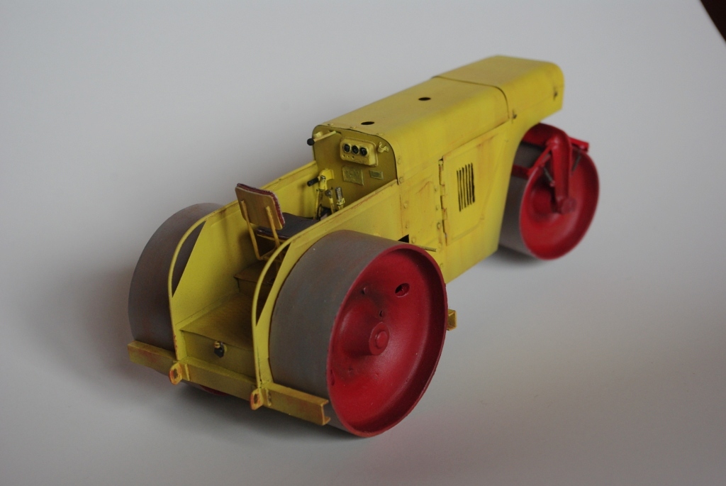 Каток который мы здесь видим Д-83 или Д-83А. Как то смотрел интервью с актёром Владимиром Заманским (водитель катка) и он рассказал, что технику, специально для фильма, перекрасили в яркий оранжево-красный цвет, видимо до этого окраска была другой, а вот какой мне, к сожалению, не известно. По этой причине, кстати, я пока не стал делать каток Д-83, хотя по нему у меня значительно больше исходной информации.