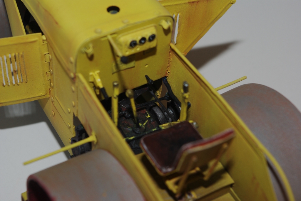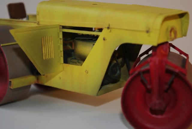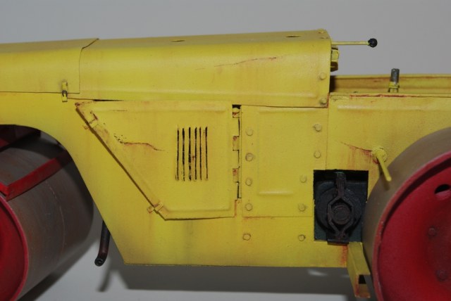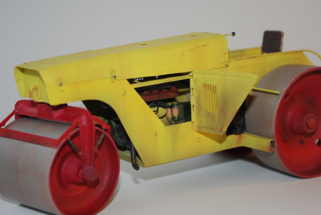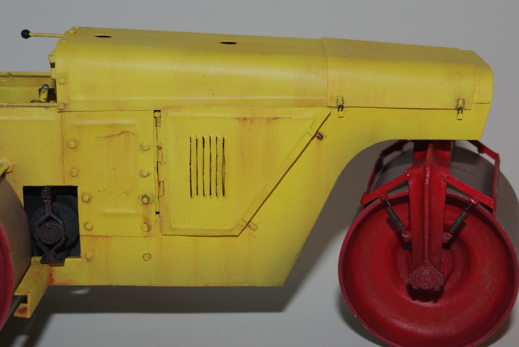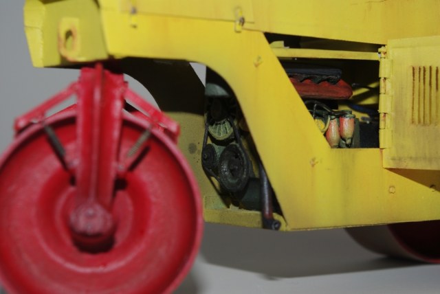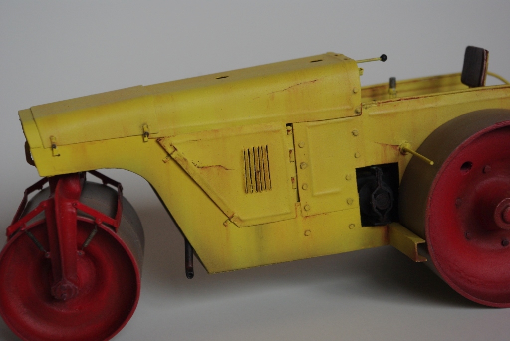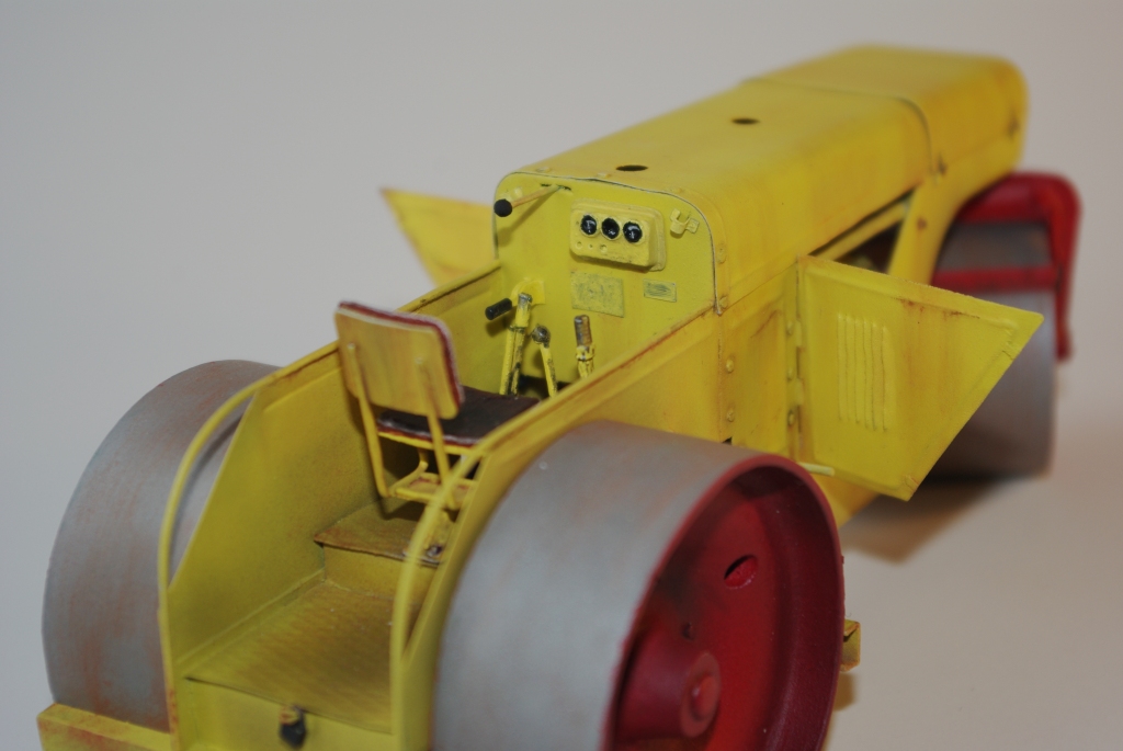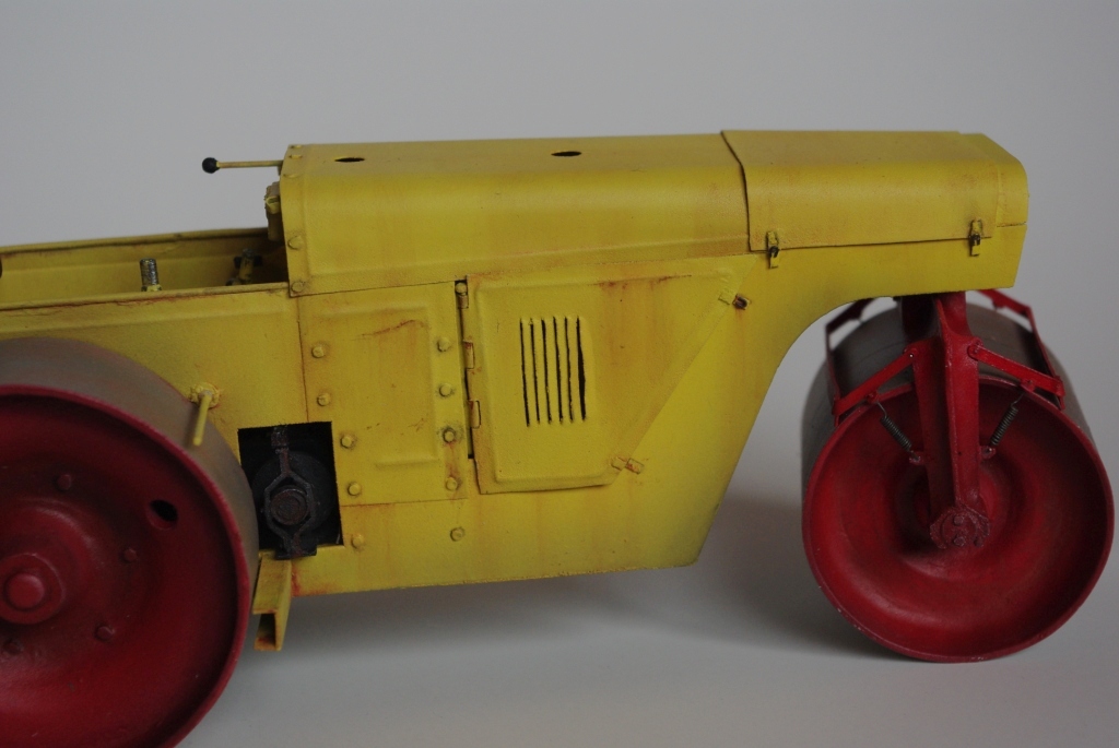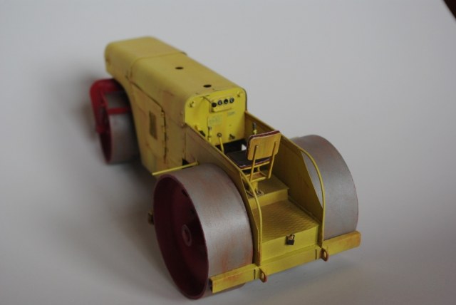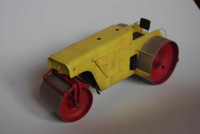 Каток который мы здесь видим Д-83 или Д-83А. Как то смотрел интервью с актёром Владимиром Заманским (водитель катка) и он рассказал, что технику, специально для фильма, перекрасили в яркий оранжево-красный цвет, видимо до этого окраска была другой, а вот какой мне, к сожалению, не известно. По этой причине, кстати, я пока не стал делать каток Д-83, хотя по нему у меня значительно больше исходной информации.