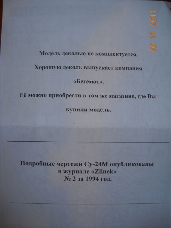 Инструкция вполне понятна. Предлагается исполнить один из трех предложенных бортов: один Липецкий и два Воронежских, но последняя страница указывает что собирать скорее всего надо один из 55-ти вариантов, предложенных "Бегемотом"(меня это не расстроило).