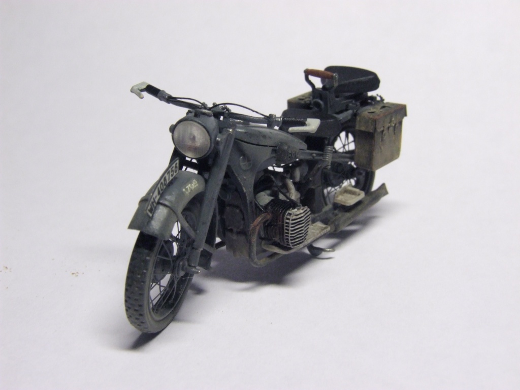 Всем известный набор от Звезды, на этот раз соло, без коляски. Использовал набор травления от Мира моделей (обзор: http://karopka.ru/community/user/11480/?MODEL=236791)
