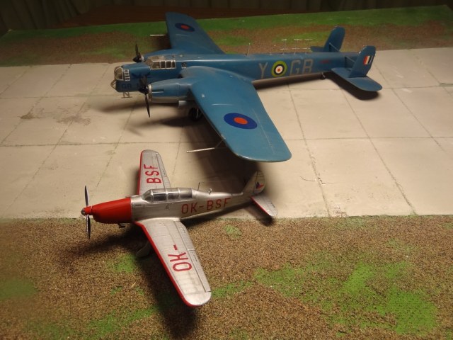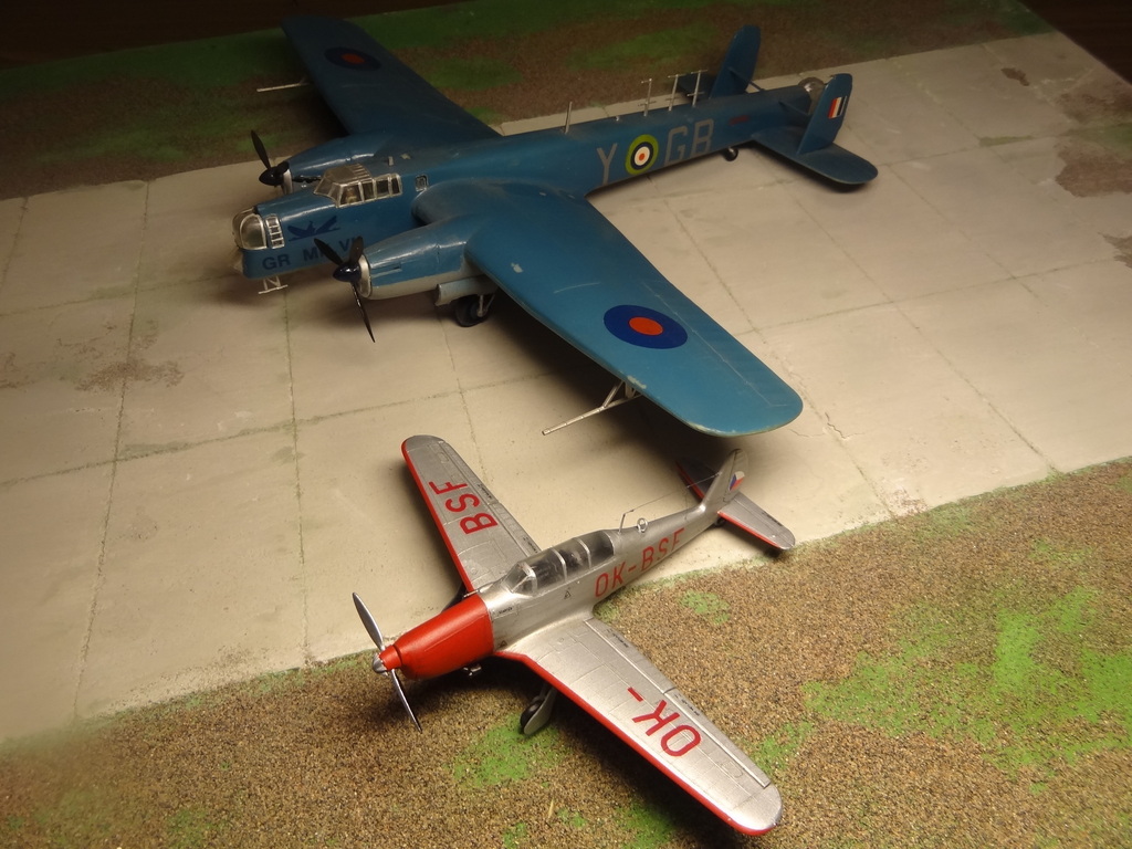 Я эту модель собирал еще в конце 80-х, и в этой же самой окраске. У Вас вроде вышло нормально. Правда, странный обгадинг. Самолет явно не первой свежести, а выхлопа нет. А вот Уитли на заднем плане - в каком-то фантастическом камо.