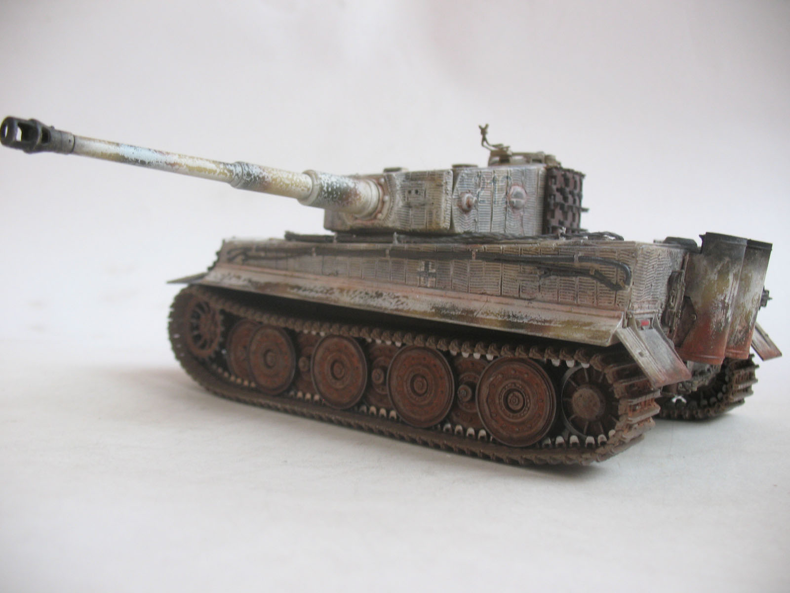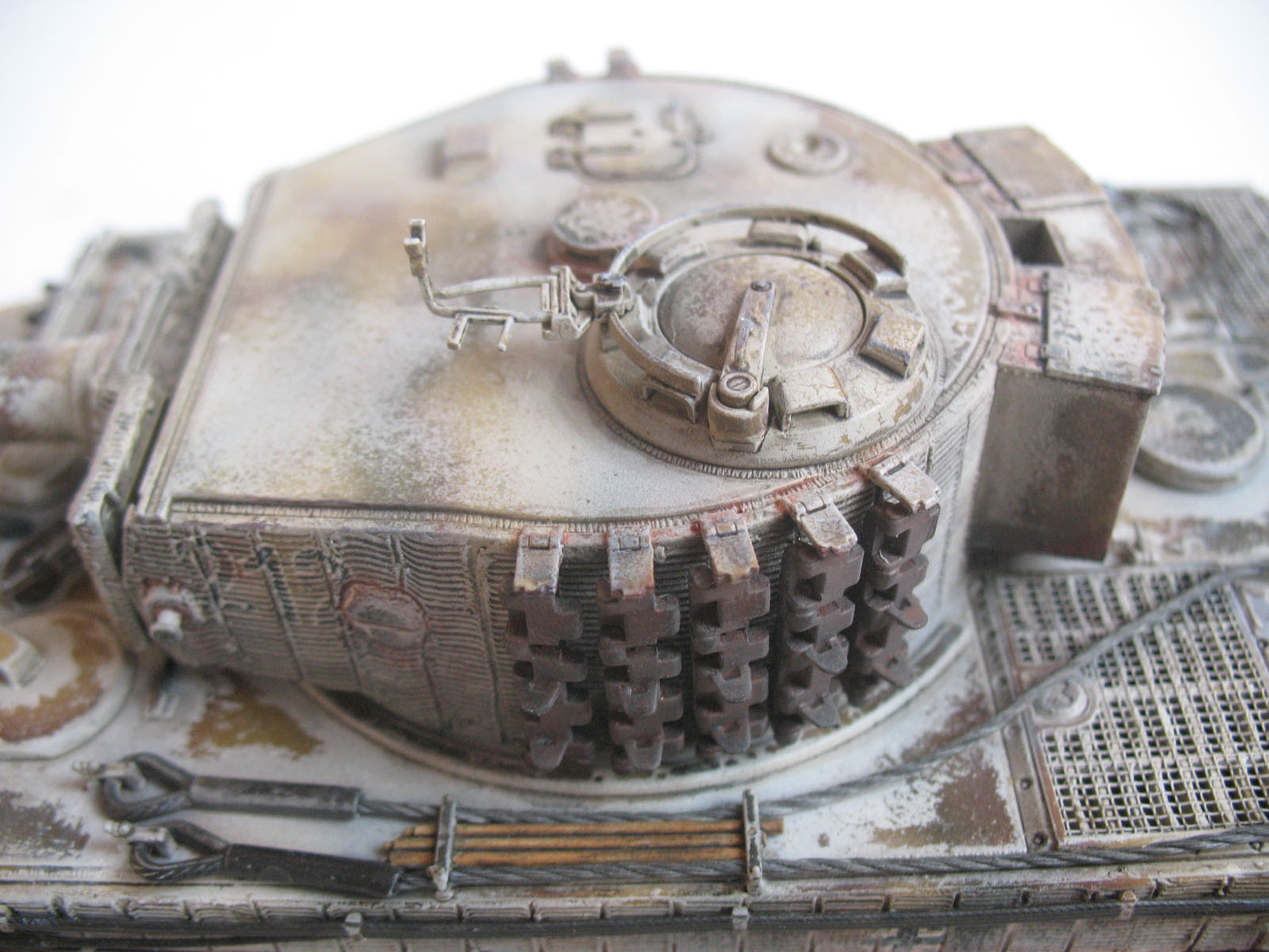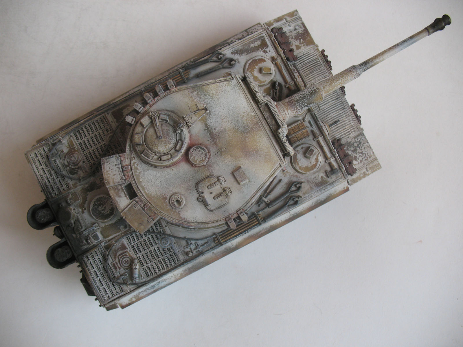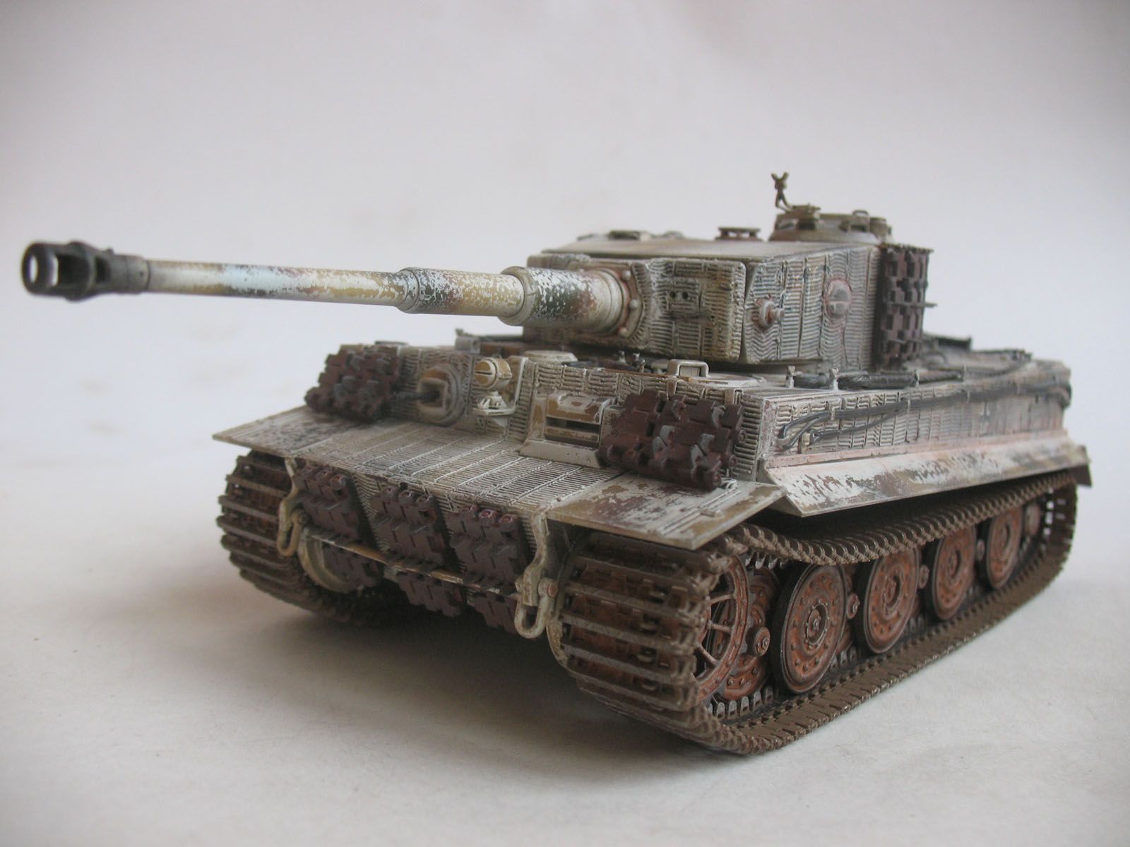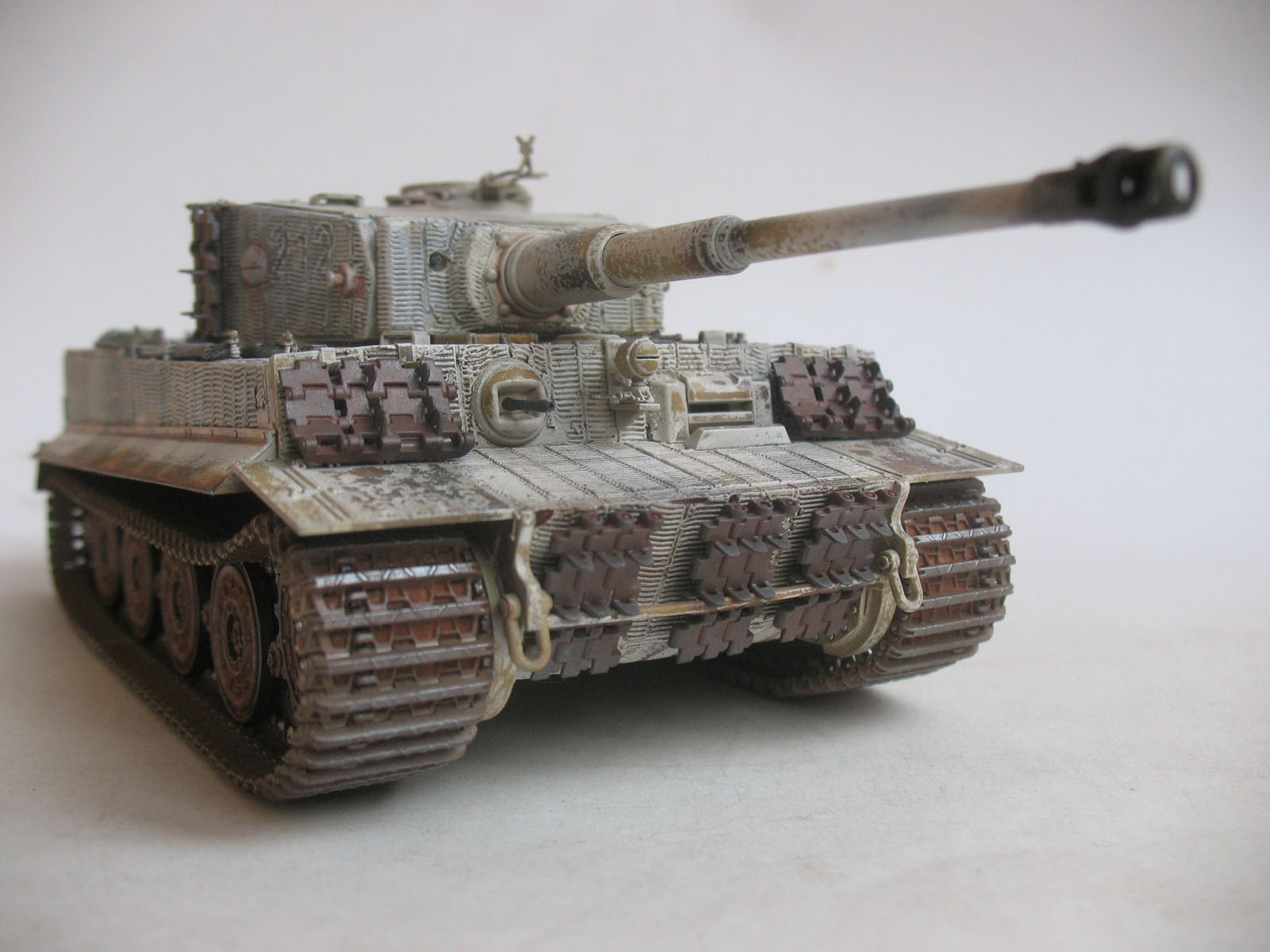 Приветствую уважаемые моделисты. Размещаю для обсуждения, своего рода, экспериментальную модель Тигра I. Экпериментальную потому, что мною впервые был опробована технология нанесения циммерита из двухкомпонентной шпаклевки фимы Тамия, а так же нанесения зимнего камуфляжа. Потертый "зимник" делался при помощи лака для волос. Красил акрилом фирмы Тамия. В матчасть не вдавался, т.к. делал акцент на покраску. Из доработок практически ничего не делал, разве что заменил траки на металлические, да и еще повесил зап.траки на корпус. Ну а дальше все по схеме смывка MIG, пигменты MIG, художественная пастель. Для дальнейшей работы жду советов и критики. Приятного просмотра.