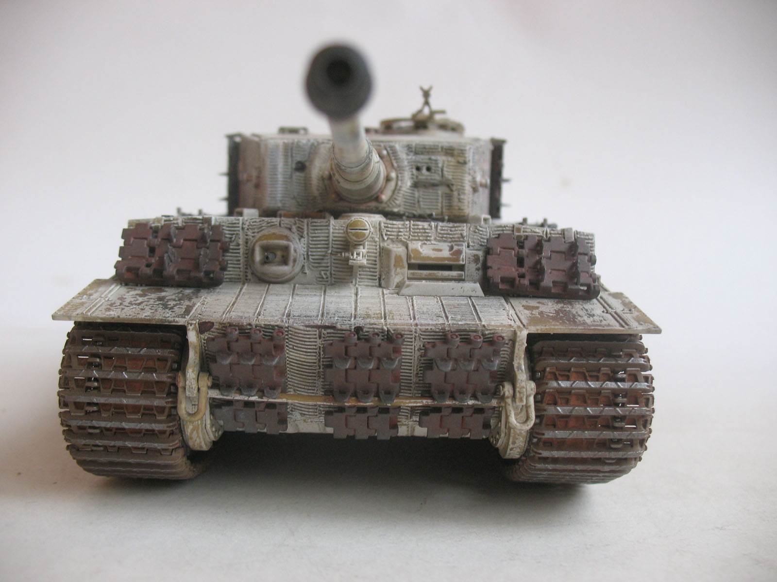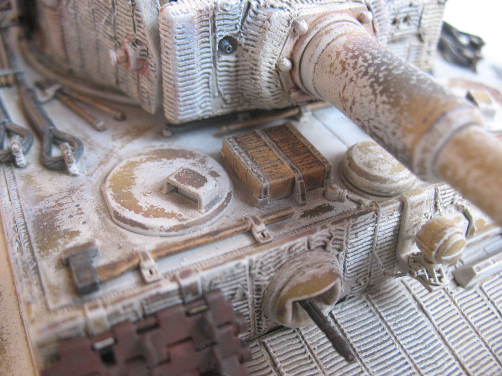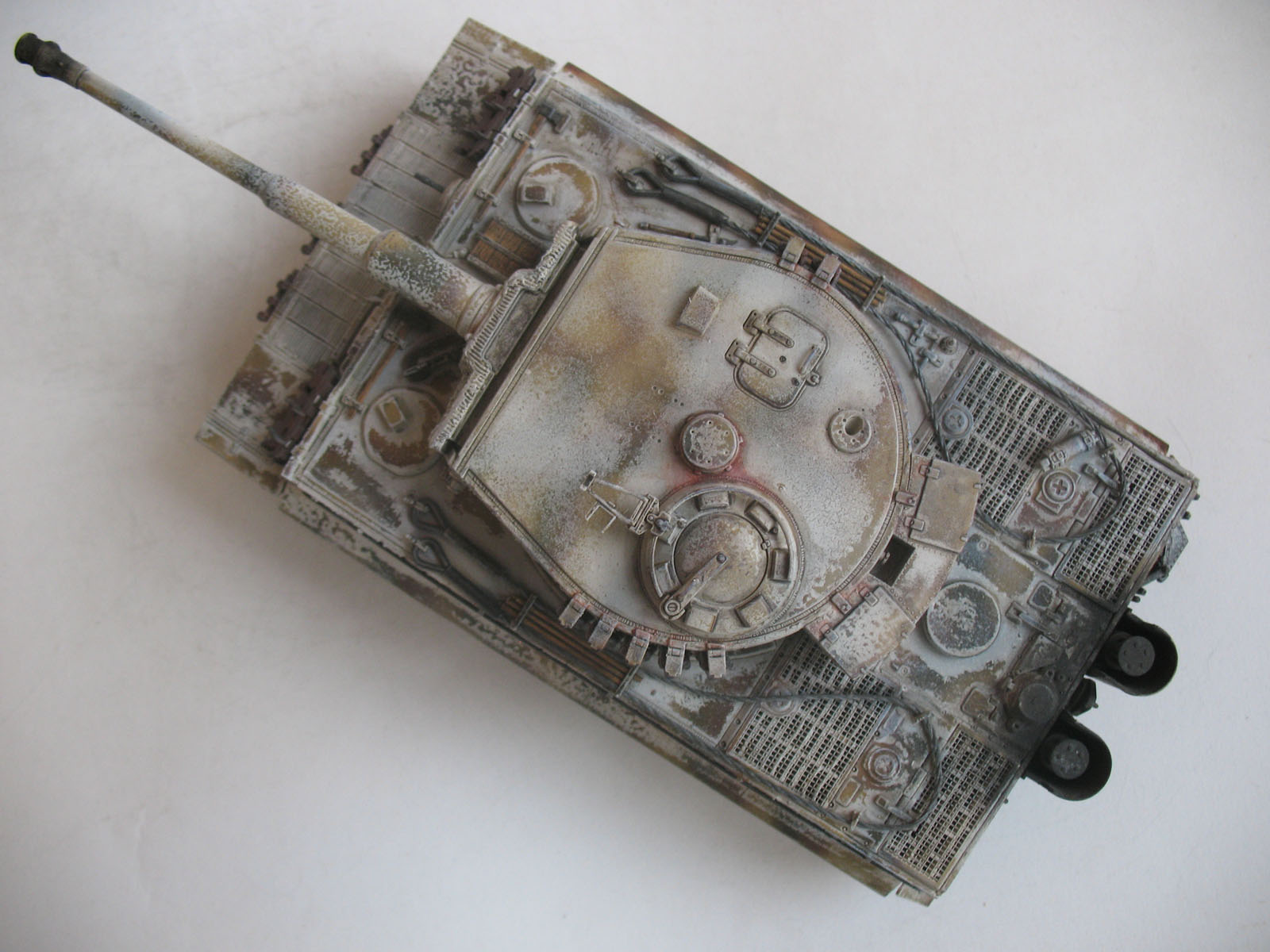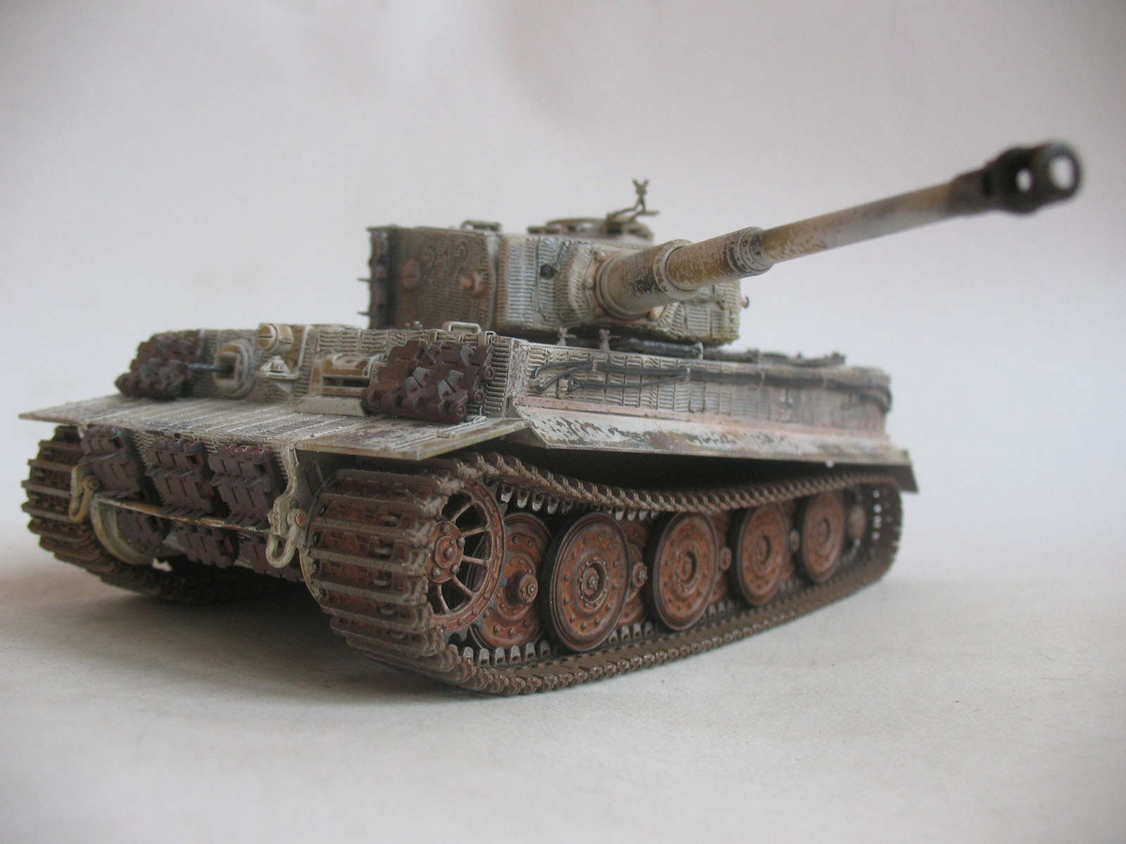 Приветствую уважаемые моделисты. Размещаю для обсуждения, своего рода, экспериментальную модель Тигра I. Экпериментальную потому, что мною впервые был опробована технология нанесения циммерита из двухкомпонентной шпаклевки фимы Тамия, а так же нанесения зимнего камуфляжа. Потертый "зимник" делался при помощи лака для волос. Красил акрилом фирмы Тамия. В матчасть не вдавался, т.к. делал акцент на покраску. Из доработок практически ничего не делал, разве что заменил траки на металлические, да и еще повесил зап.траки на корпус. Ну а дальше все по схеме смывка MIG, пигменты MIG, художественная пастель. Для дальнейшей работы жду советов и критики. Приятного просмотра.