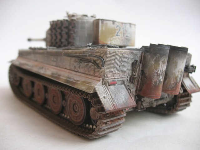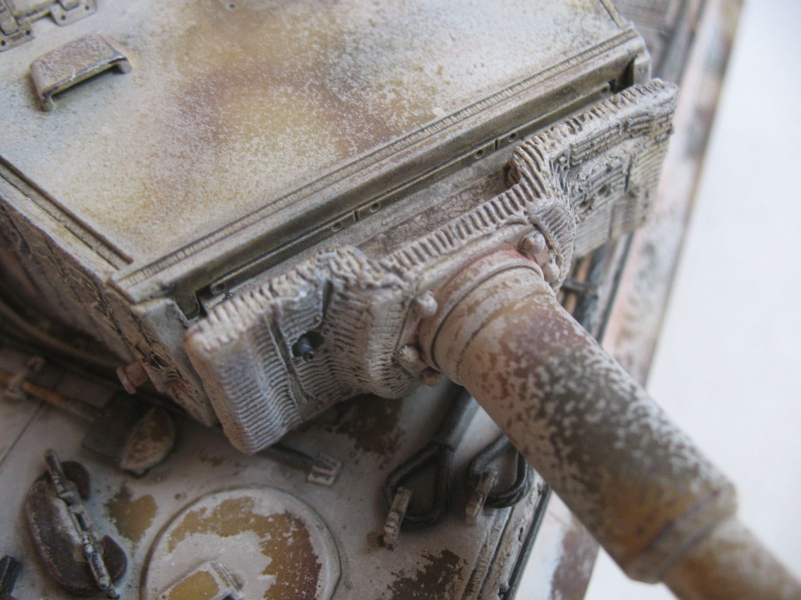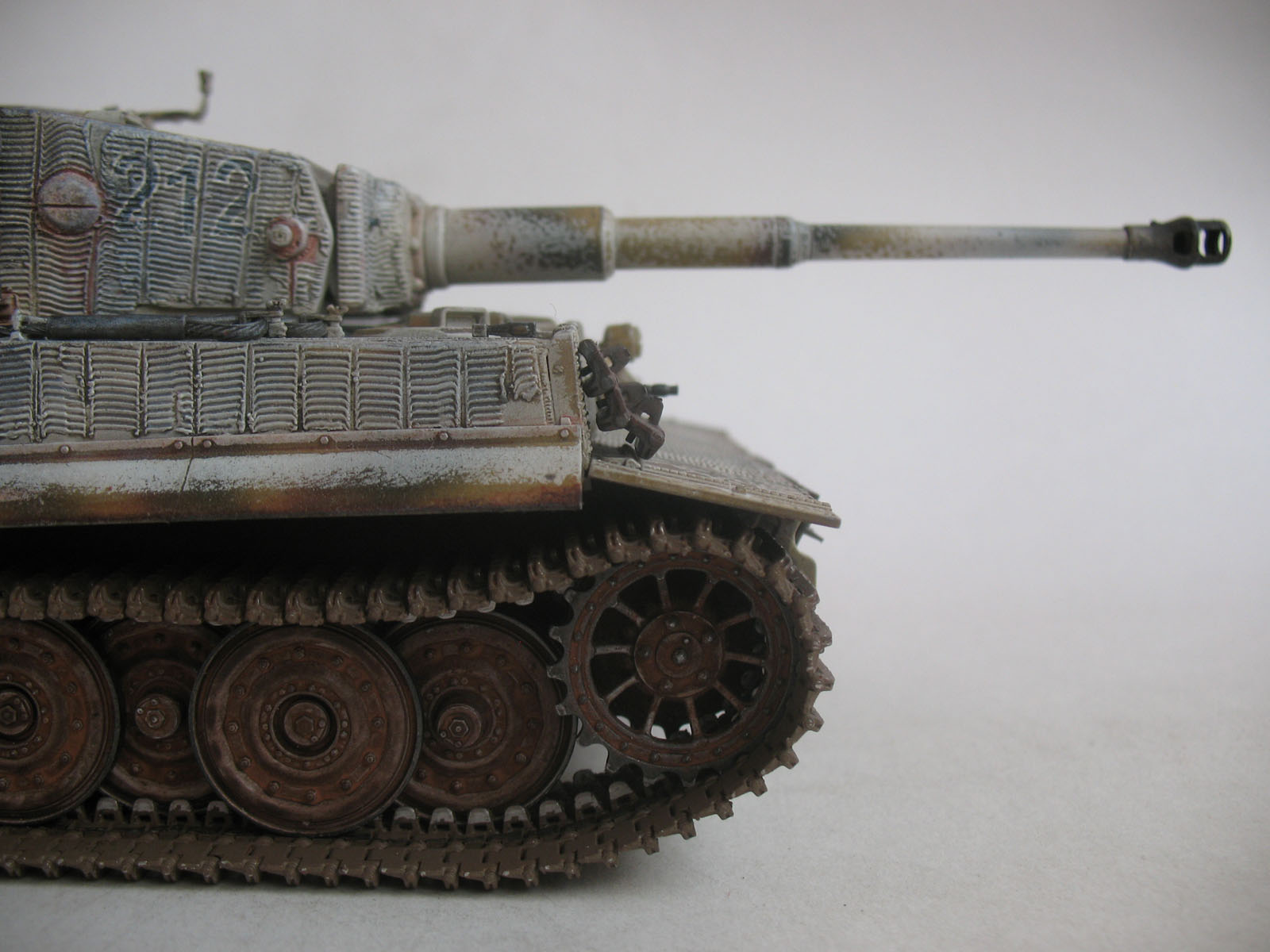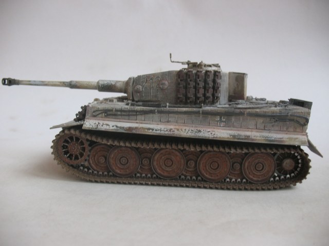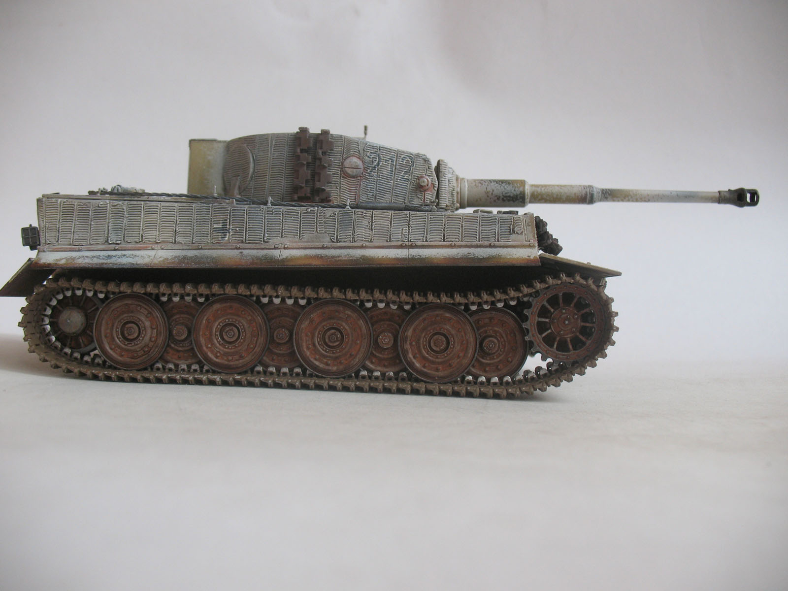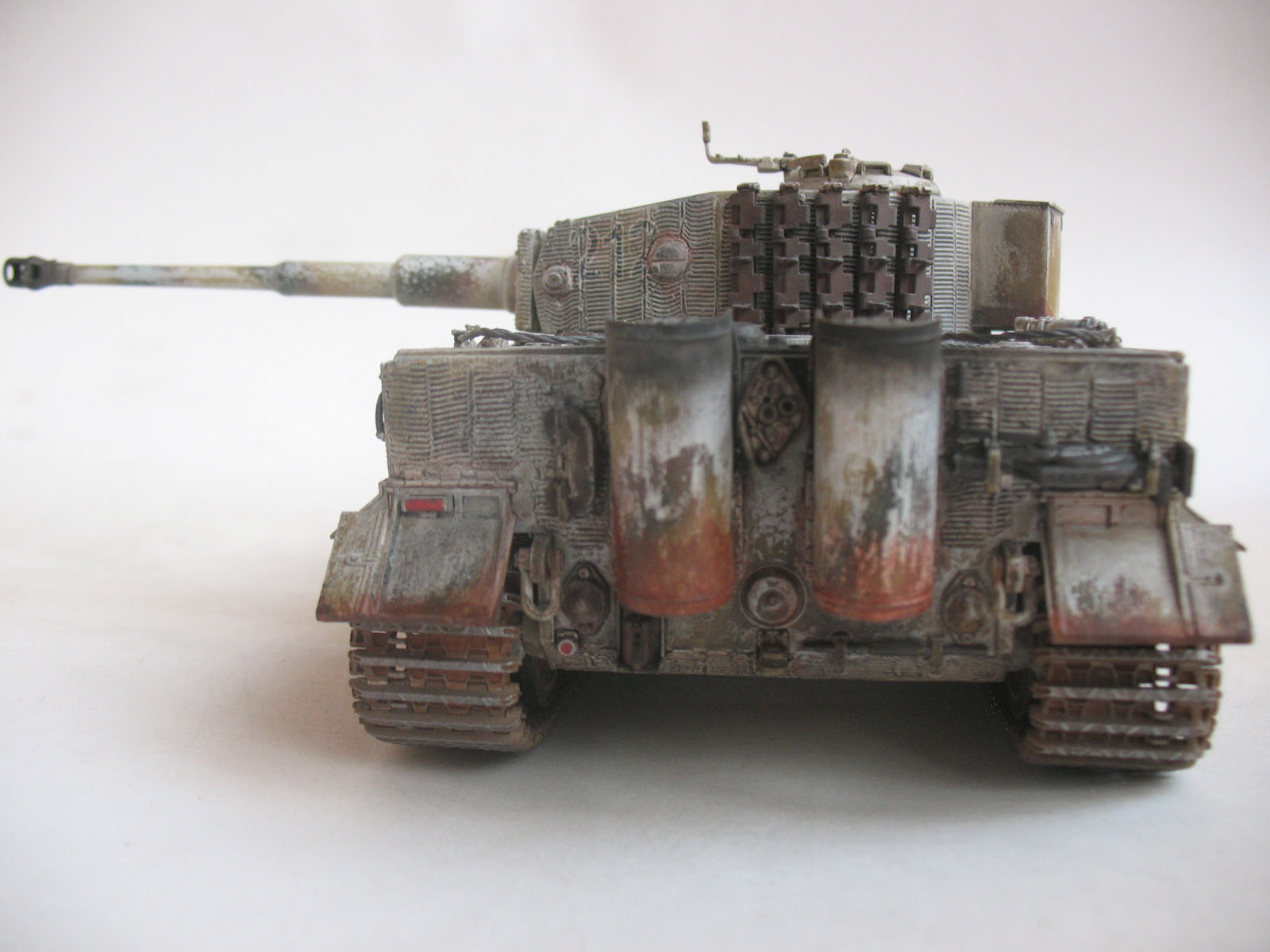 Приветствую уважаемые моделисты. Размещаю для обсуждения, своего рода, экспериментальную модель Тигра I. Экпериментальную потому, что мною впервые был опробована технология нанесения циммерита из двухкомпонентной шпаклевки фимы Тамия, а так же нанесения зимнего камуфляжа. Потертый "зимник" делался при помощи лака для волос. Красил акрилом фирмы Тамия. В матчасть не вдавался, т.к. делал акцент на покраску. Из доработок практически ничего не делал, разве что заменил траки на металлические, да и еще повесил зап.траки на корпус. Ну а дальше все по схеме смывка MIG, пигменты MIG, художественная пастель. Для дальнейшей работы жду советов и критики. Приятного просмотра.
