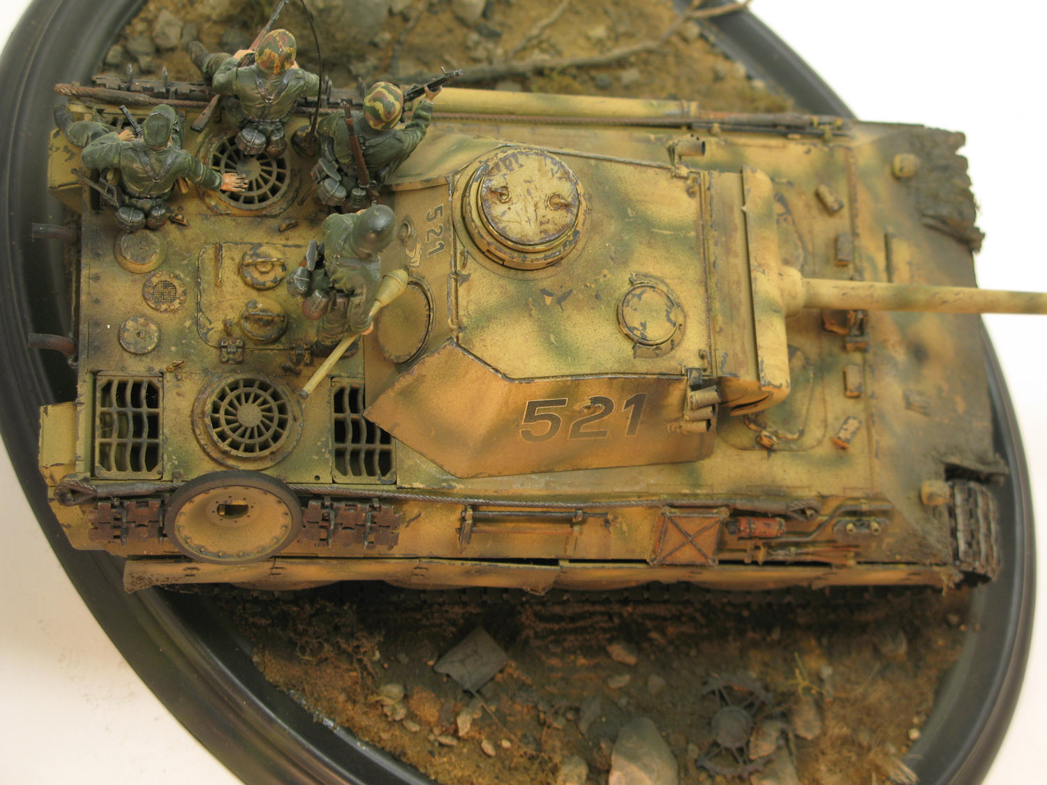 Смотрится очень здорово, танк удался, подставка тоже на высоте, да и гансы (что можно рассмотреть) неплохи. Все-таки на фото надо было бы по-больше крупных планов дать.