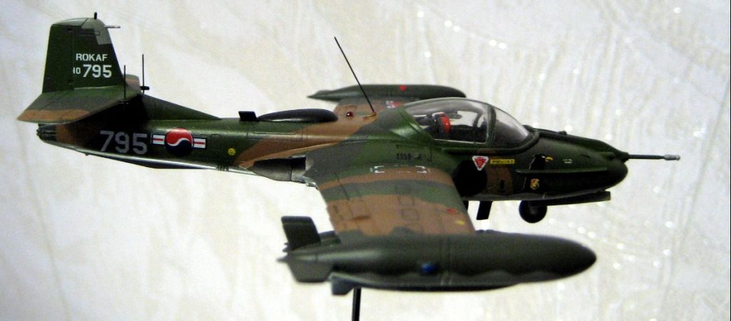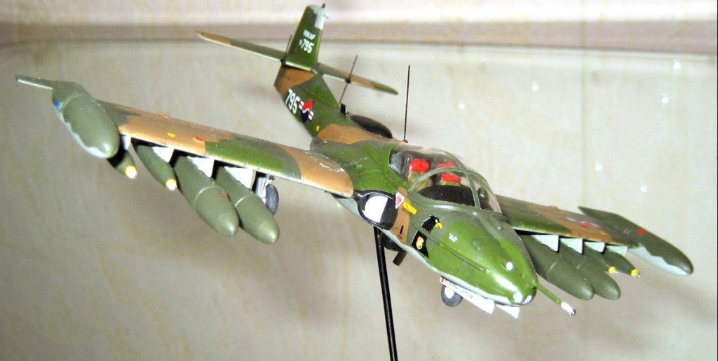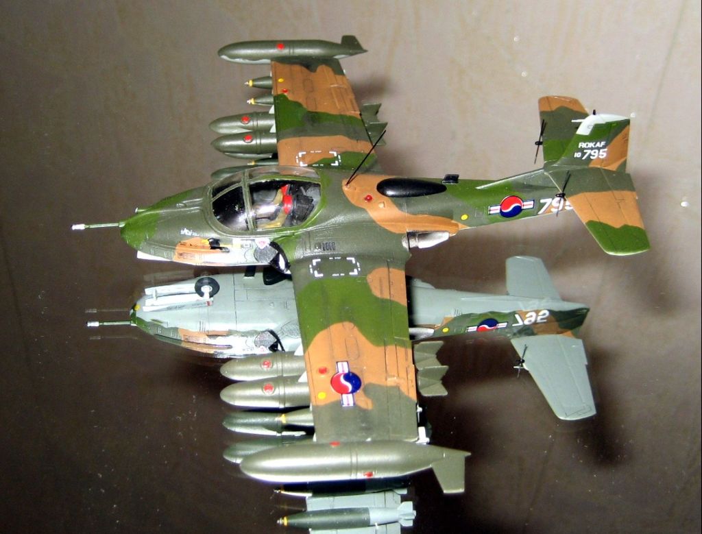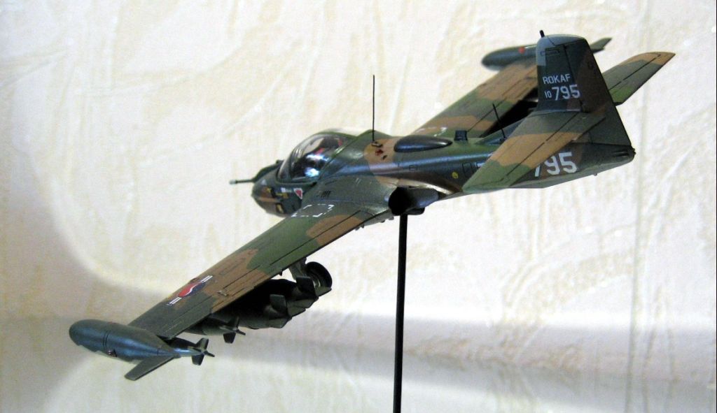 В сборке она оказалось очень не сложной, из доработок только имитация внутренней поверхности В.З. сыропластом, антенны , строевые огни из прозрачного литника, покрыты лаком для ногтей. Окраска ХАМБРОЛ эмаль, Юго- Восточная Азия, типичный камо, для ВВС Ю, Кореи. Пилотажная группа Черные орлы , скорее всего не несла какого либо вооружения, но куда же без него? Фото , частично без вспышки , т,к, она сильно искажает оттенки. Благодарю за внимание . Рекомендую к постройке, масса позитива.