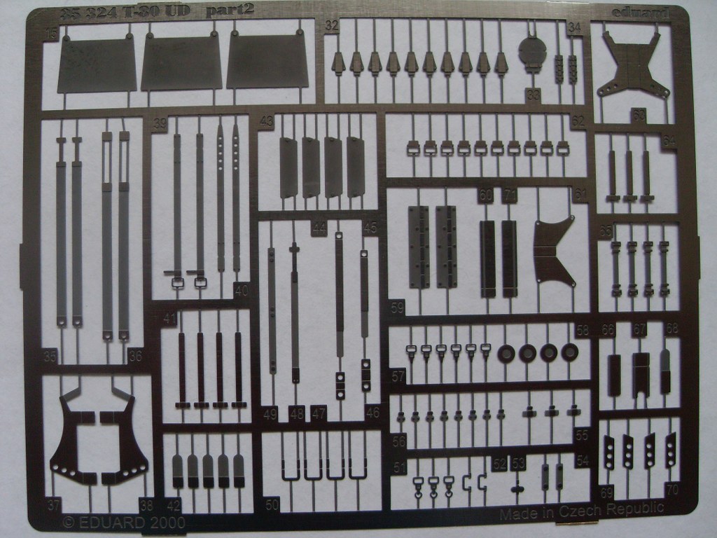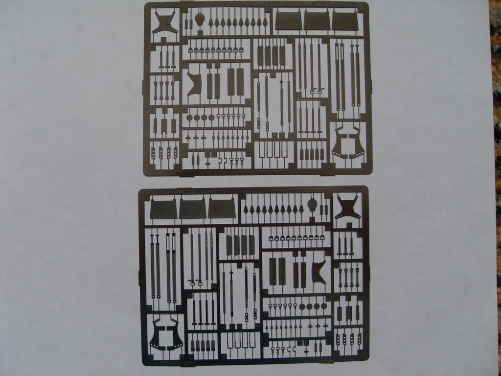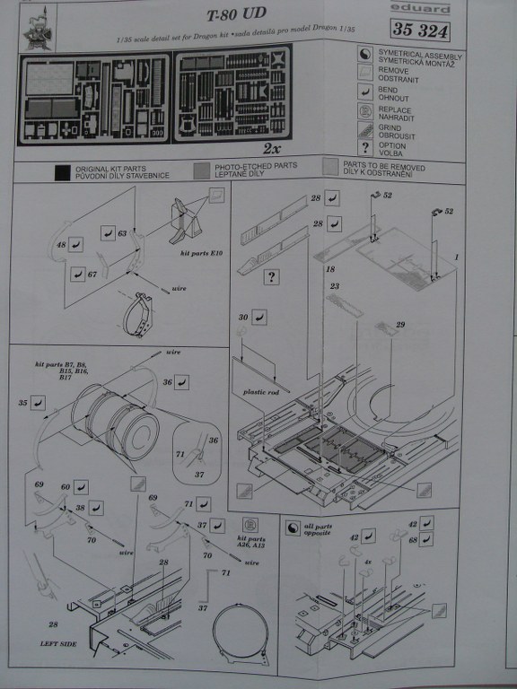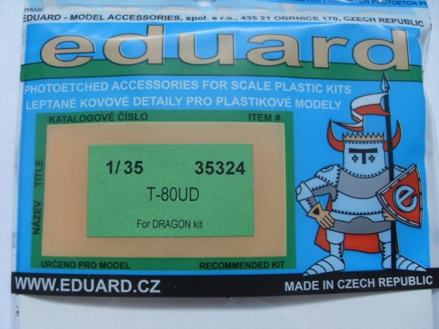 Ну и наконец травление от Eduard на Драгоновский кит, коим по сути и является Звёздовская 80-ка. В наборе присутствуют три платы, две из них одинаковые. В инструкции так же даны трафареты для окраски катков.