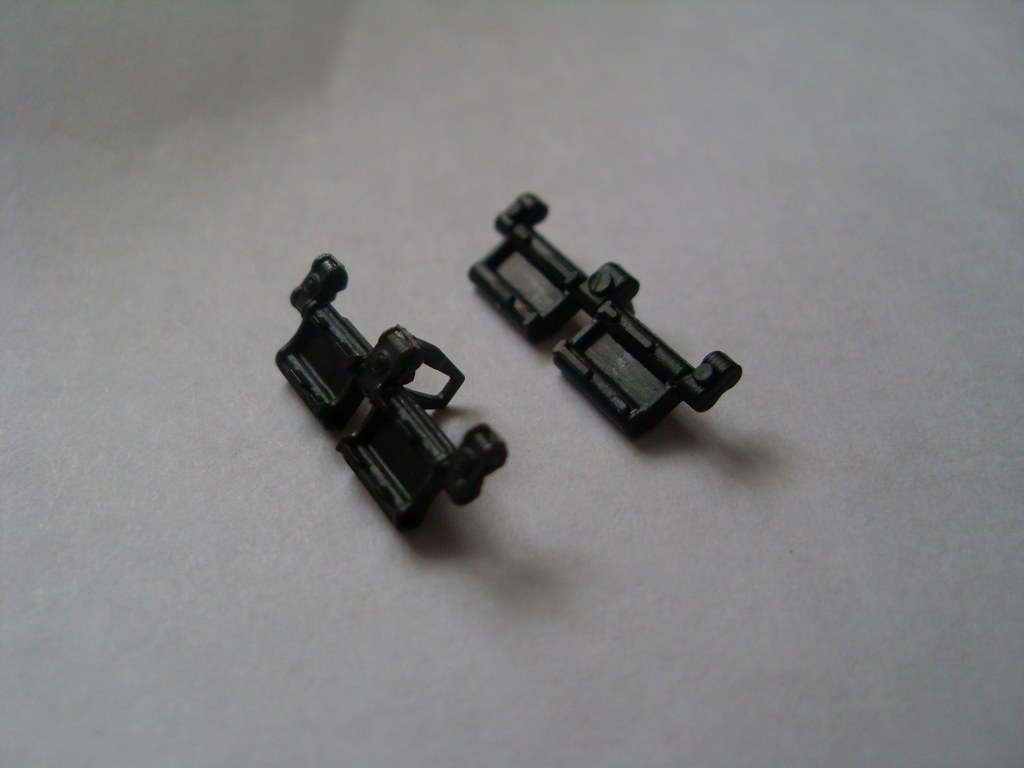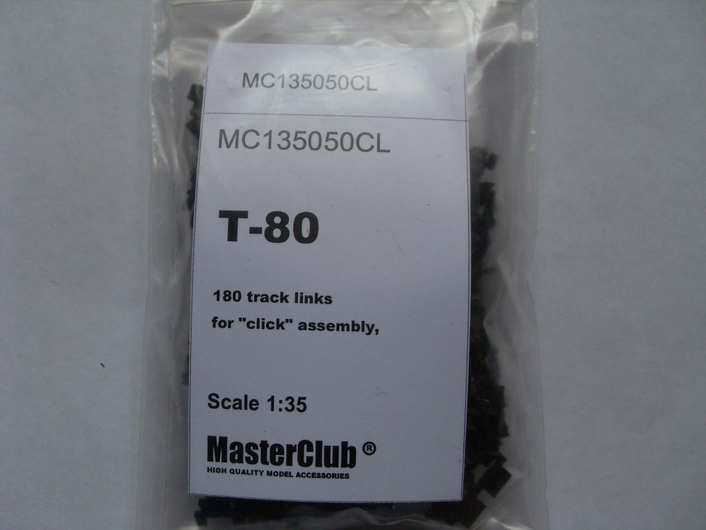 Неплохим дополнением к модели послужат смоляные траки фирмы Master Club. В наборе даётся 180 отдельных траков, собираемых "на щелчок". Думаю на фото хорошо видны различия "изкоробочных" и смоляных траков. (слева MC, справа Звезда)