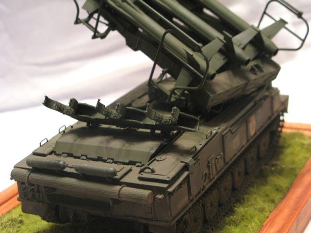 Выставляю на обозрение модель пусковой установки ЗРК КУБ фирмы Моделист в масштабе 1/35.Не для кого уже не секрет, что данный кит является перепаковкой модели китайской фирмы Trumpeter. Собственно можно уточнить что перепаковка частичная. От китайцев в коробке лежит только пластик, все остальное наше. Кроме этого в коробке нет платы фототравления и шлангов различного диаметра. Поэтому пилу, горизонтальные поручни, решетку МТО, а также различного рода гибкие соединения добавлены от себя.
