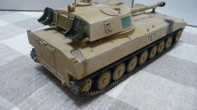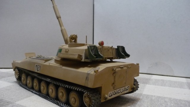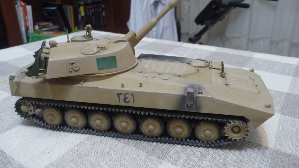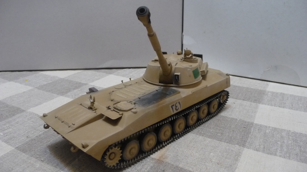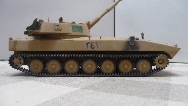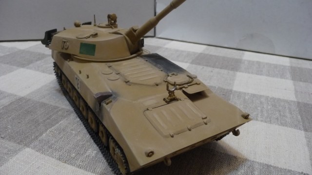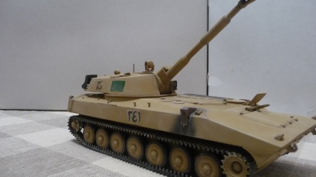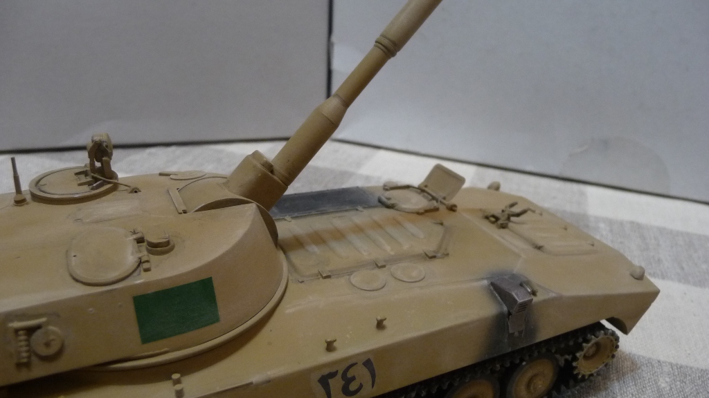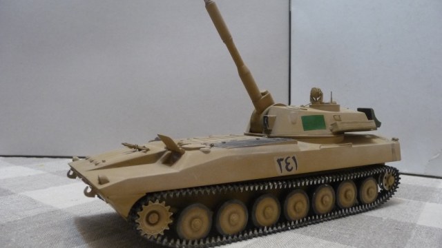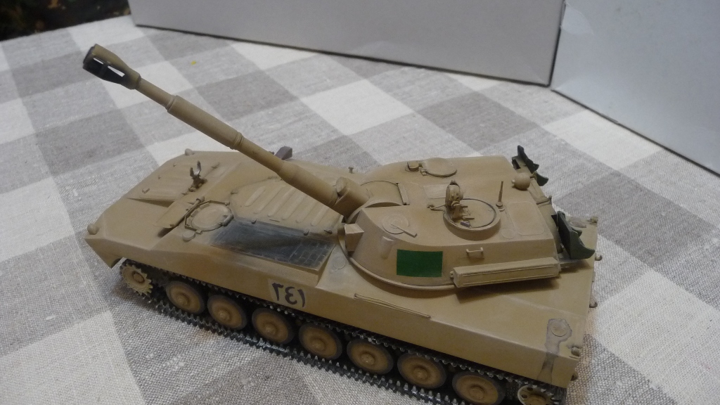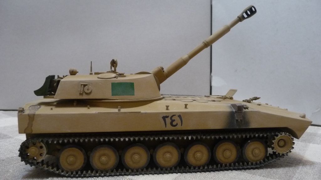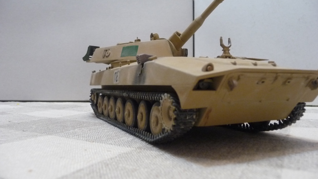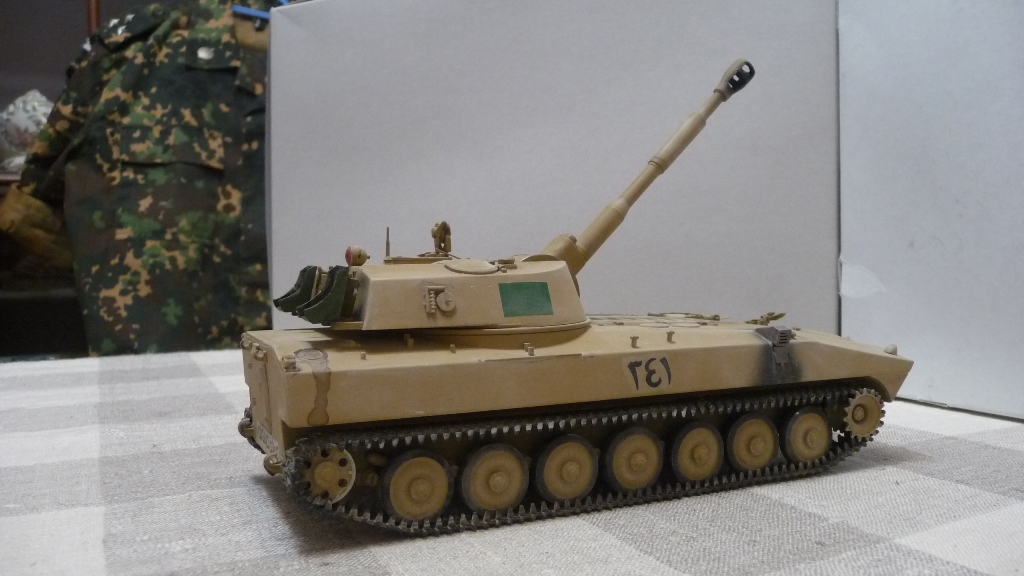 САУ 2С1 "Гвоздика" в память пламенному борцу с америкосами полковнику М. Кадаффи. Набор очень известный "Скиф" Собирался без проблем, но как мне кажется и без изысков.Хотелось бы в теории оживить машину каким-нибудь стволом металлическим, гусями наборными и т.д. Пока остановился на классическом "песке" с высветлением пудрой и набольшой смывкой акварелью...