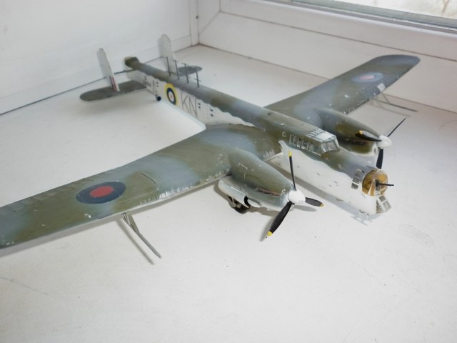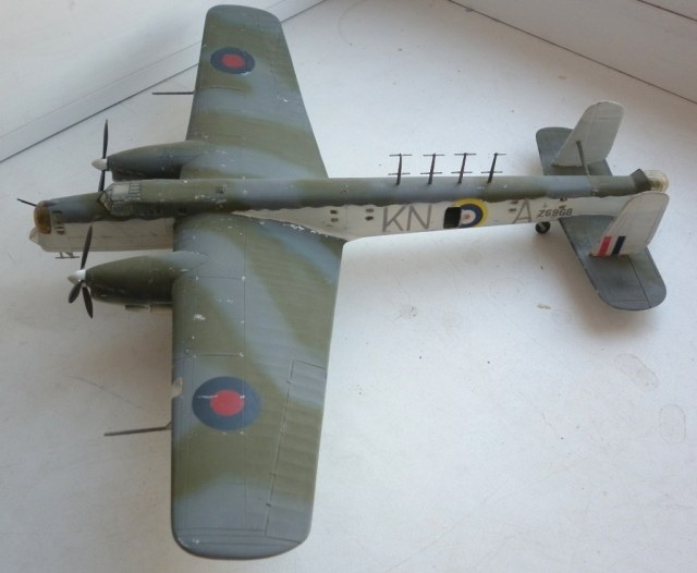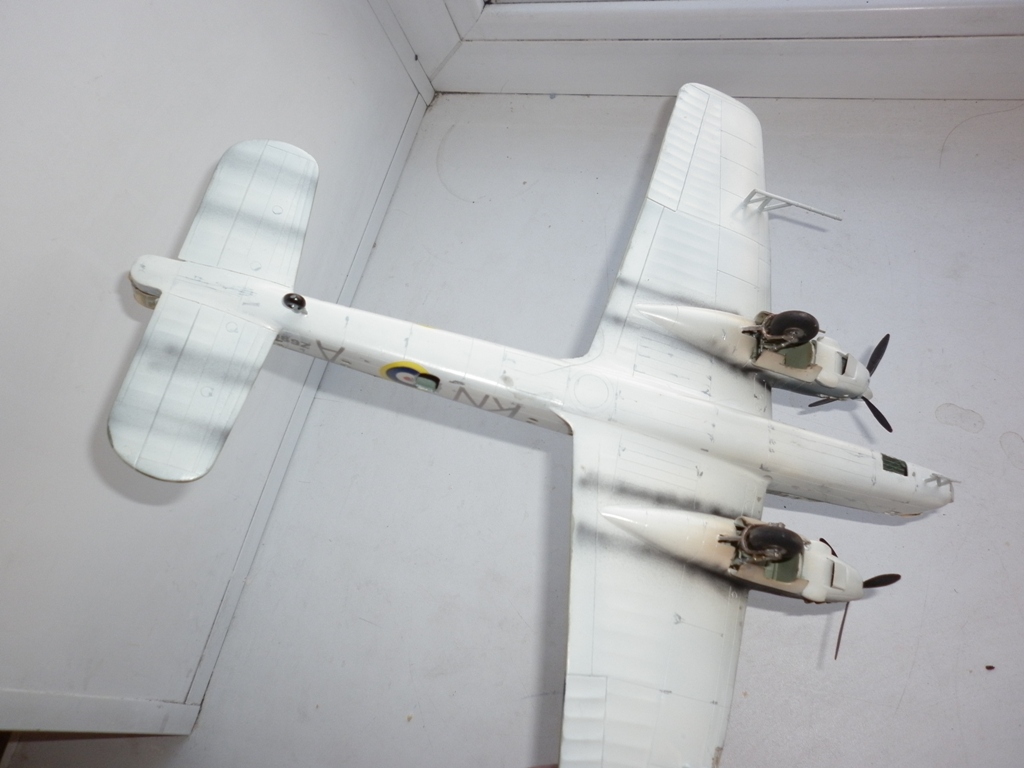 Модель собрана с доработками на основе копии Варпайнта (светокопии а не ксерокса). Нарезан крой , сделана имитация полотна , сделан интерьер ниш и кабин , Выдавлено новое остекление стрелковых точек , сделаны иллюминаторы. Окраска взята из какого- то журнала , самолет берегового командования. ОЗ подобраны по размерам , коды - трафареты. Окраска - аэрограф , testors.