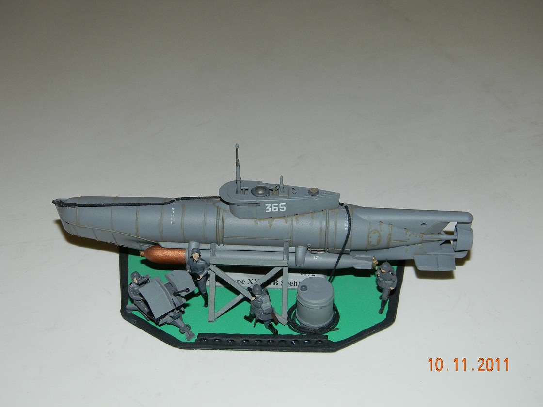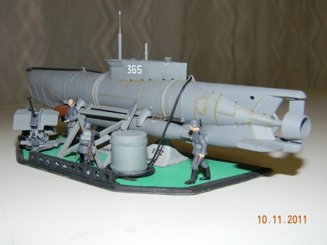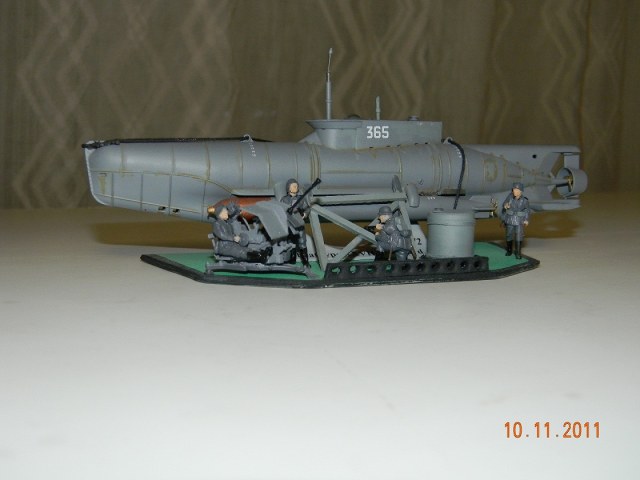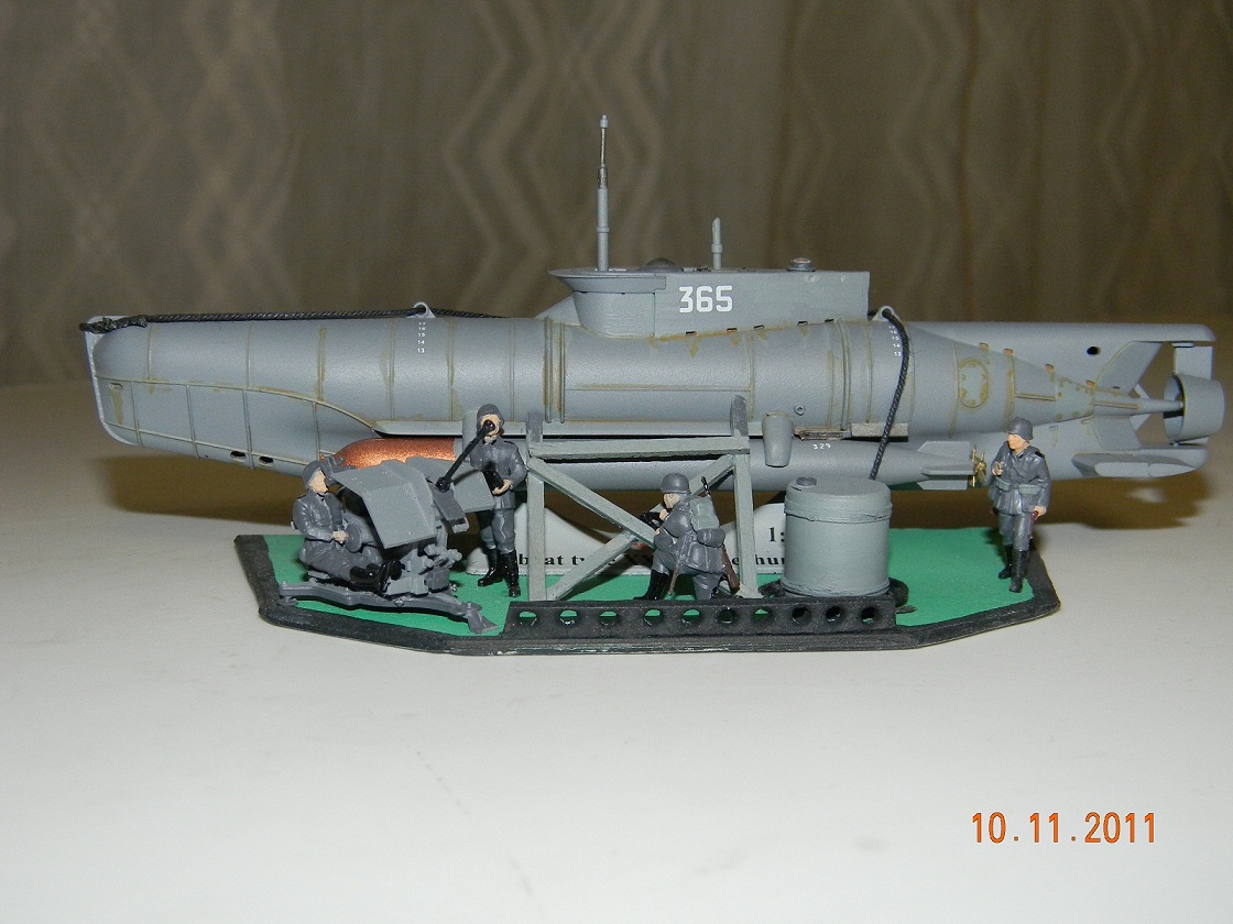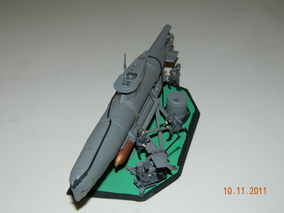 Здравствуйте господа моделисты ! Вот решился выставить своего " ТЮЛЕНЬЧИКА " Посамой подлодке многого не скажешь т.к. повоевать толком им не пришлось ( выпуск начался в конце войны ) и нам и союзникам в этом очень повезло ! Но шуму по поводу появления их у немцев было много, особенно англечане сильно обеспокоились своим прибрежным судоходством - потомучто эти подлодки практически не обнаружимы . По модели : стыковка и собираемость на высоком уровне ! Была собрана и окрашена за 2 вечера , красил ТАМИЕЙ . ржавчена-МИГ. Собрал ,поставил на полку -ну чет не то .Из куска пластика резанул подставку ,прикрепил фал, сделал бочку и понеслось.......... Зенитка и солдаты ЗВЕЗДА ; капитан и матросы РЕВЕЛ . Приятного всем просмотра ...