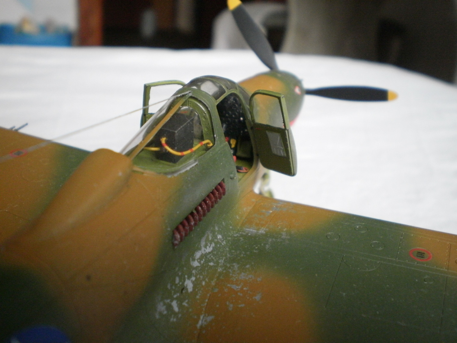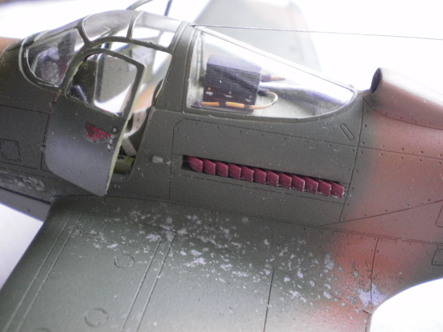 Александр Филатов, Вы правы,эта Кобра 67 ИЭ, Гуадалканал,1942г.Кодовые огни, как и тонировка в ближайшее время будут добавлены. SchumacheR,солевой метод прост.Вначале я положил серебрянку, как грунт,потом в нужных местах смазал водой, несильно, и сверху посыпал поваренной крупной солью. После высыхания покрасил и смыл соль под струёй воды, вот и всё.Удачи!