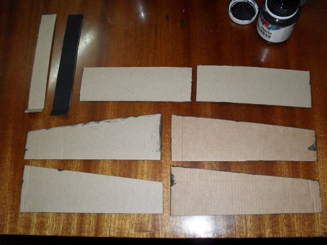 Подставка из 8 картонных частей, склеенных и окрашенных черным акрилом. Надписи и звезду писал кистью.