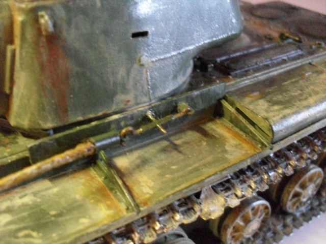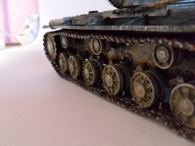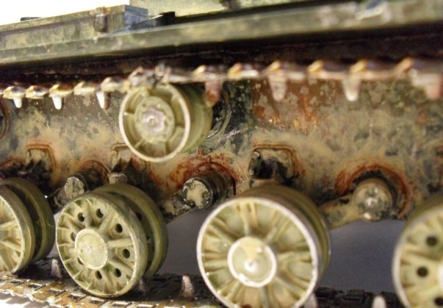 Вообще сам набор хреновый попался... Не качественная отливка. Косяки были в самих деталях. А схема сборки - это ваще застрелиться можно! Большая проблема была с гусями: слишком жесткие, плохо ложились на катки, все-таки приклеил ито фигово... В общем косяки есть))).
