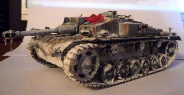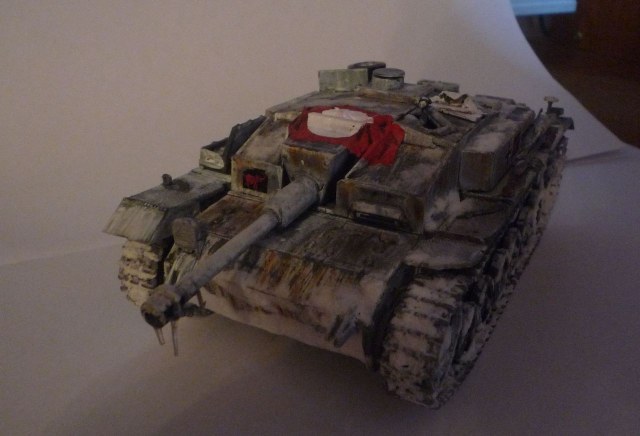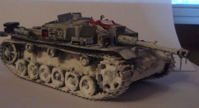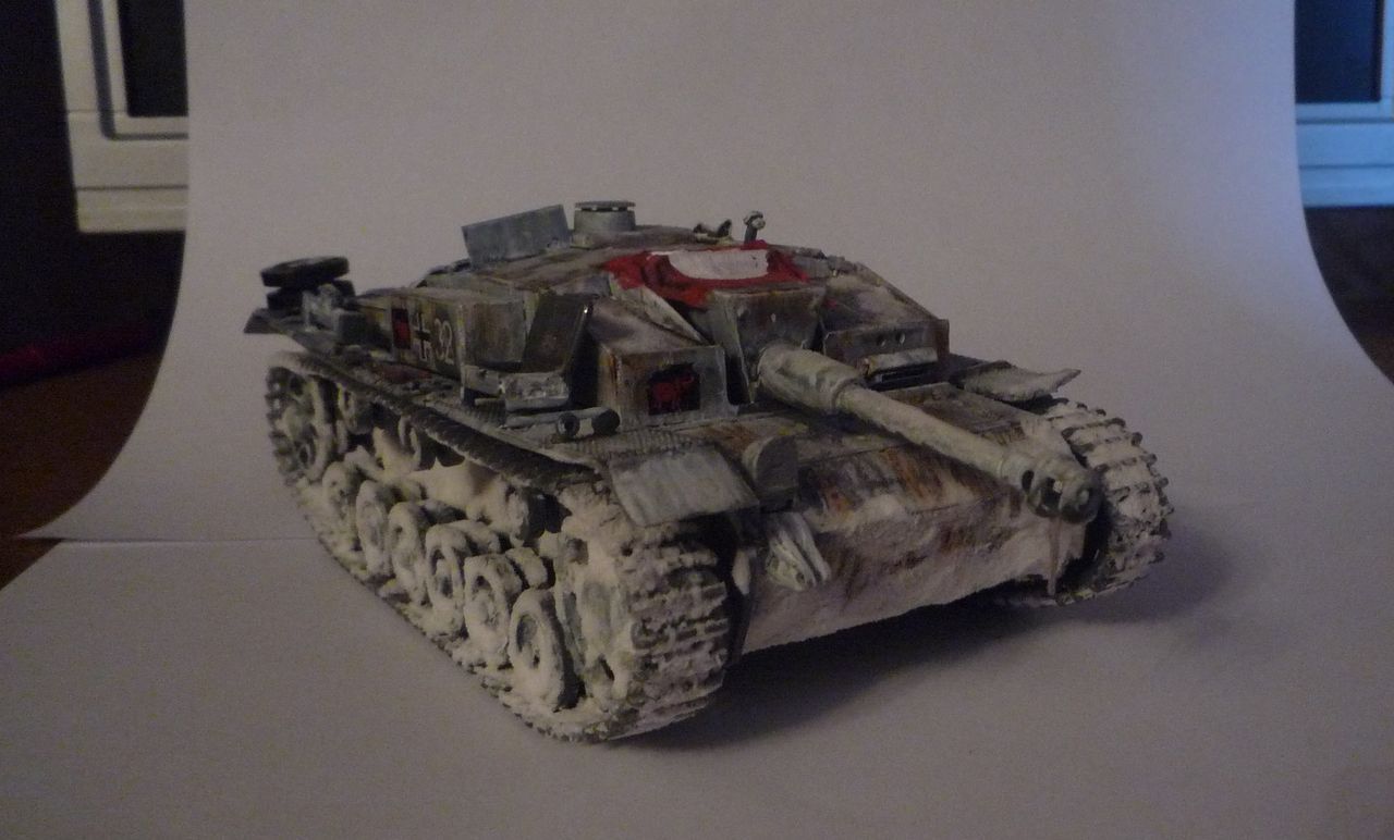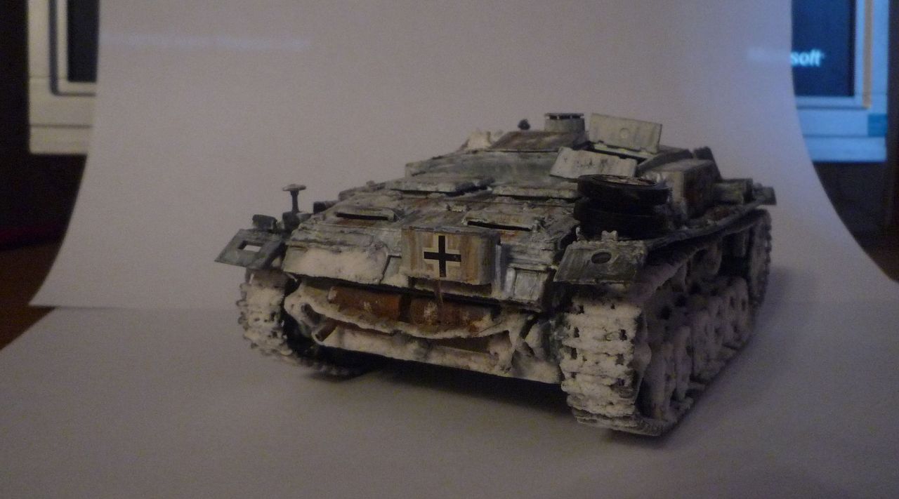Маленький нюанс: не наносите снег и лед на орудие, при стрельбе все это стаивает. А так создается впечатление что Ваш Штуг простоял несколько месяцев на свалке металлолома, а не видывал виды.