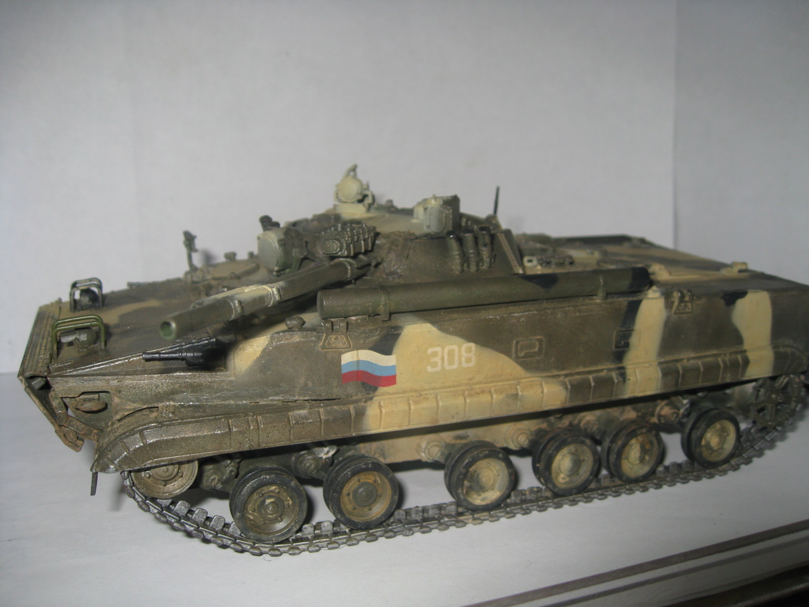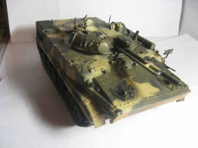 БМП-3 Красил аканом и кое где звездой, пачкал пигментами "мастер пигмент", сборка изкоробочная, рассверлил пулеметики, нутрянку делал делал а потом смотрю так епт ее ж невидно будет, хотя все же надо было сделать люки открывающими, сделал маску пушки.