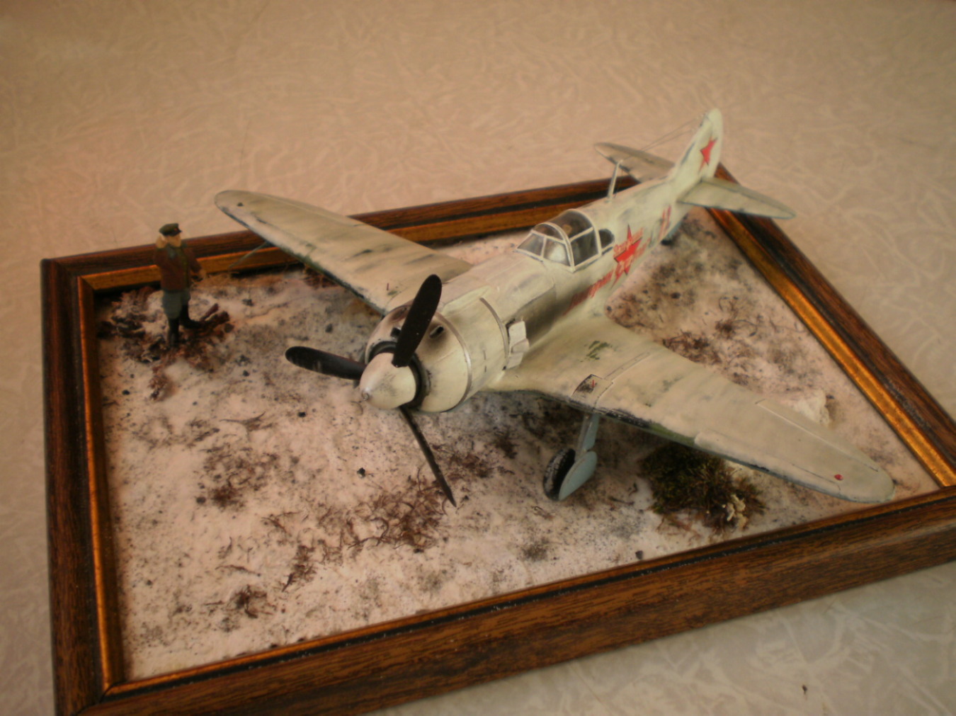 Уважаемые коллеги! Представляю вашему вниманию диорамку( виньетку) с Ла-5 от Южного Фронта. Кто собирал эту модель- тот знает, сколько труда и терпения в неё надо вложить, вот и решил без всяких долгих раздумий определить её в диорамку.