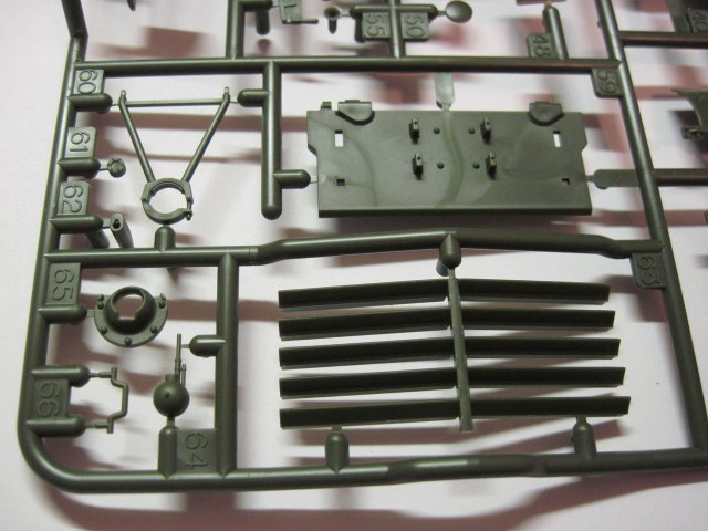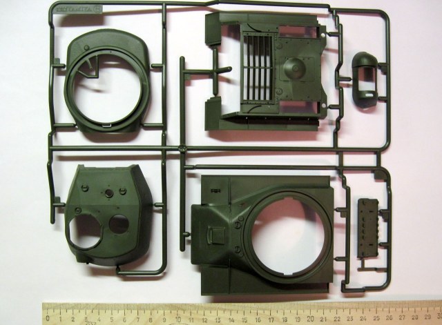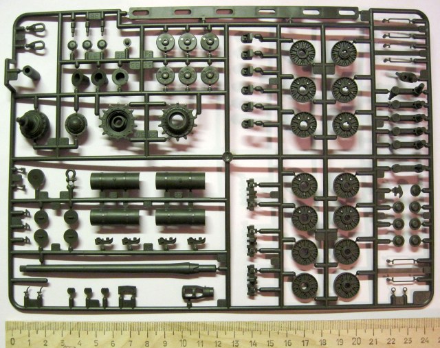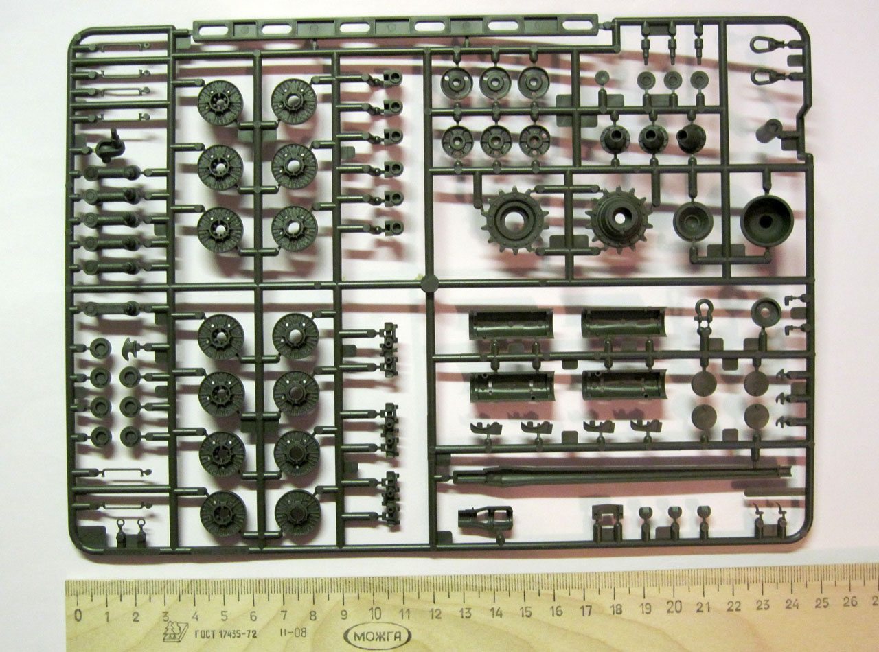 - 4 литника с деталями из темно-зеленого пластика (из них два одинаковых литника с элементами ходовой и орудия),
