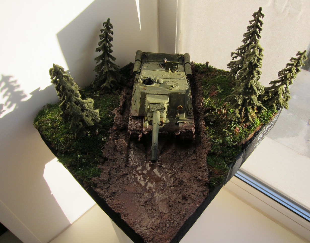 Грязь очень сочно получилась, а вот елки -не очень...По самоходу: смывку бы добавить и сколов чуток. В целом - достойно