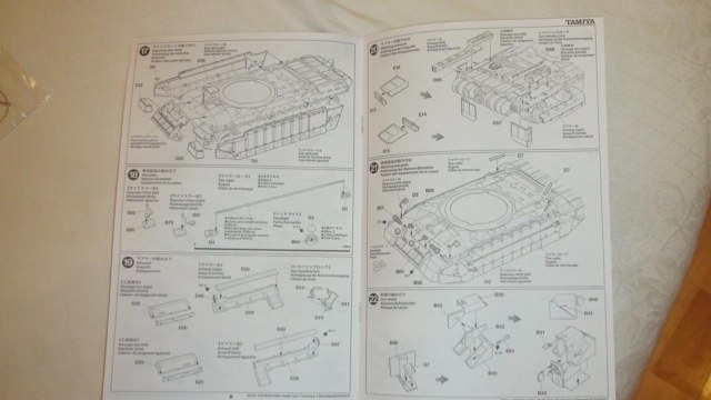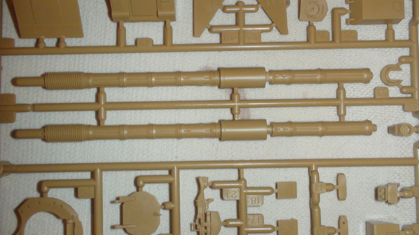 Платсик очень хорошего качества затрудняюсь сказать каково года литье т.к. нанесено 2 даты 1985 и 2004.По количеству следов от толкателе на верхней части ванны корпуса внутренней стророны можно претендовать на рекорд Гинеса.Есть небольшая..... хрень на нижней части корпуса но она не критична веть никто не будет его вымя с лупой разглядывать. Других радостей косяков не обаружено. В наборе есть виниловые гусянки хочень хорошего качества. Так же есть 2 болта с гайками (куды они суются показано на 1 этапе сборки сфотографировано специально крупным планом).Присуцтвует 22 втулки, капроновый шнур (думаю всем ясно зачем),железная проволока (ан нет нашол :-0)) и небольшой литник с прозрачным пластиком для имитации триплексов.Набор декалей на 3 (хотя там по моему можно и 4) варианта.