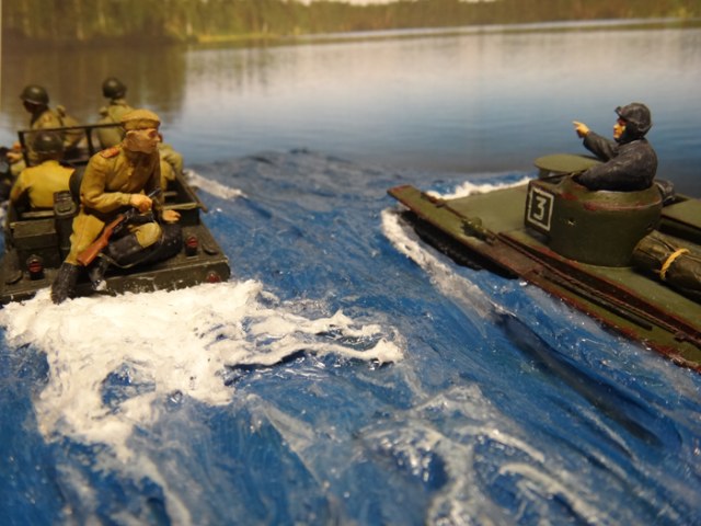 Были!Форсирование Свири-последнее боевое применение...По поводу диарамы-несколько удивил боец в пилотке-нафига ноги-то под винты пихать?...Вообще,а вот так,"верхом",реки разве переплывали?...