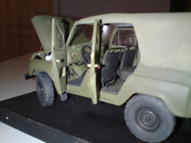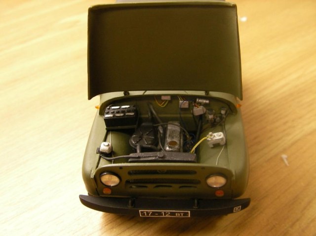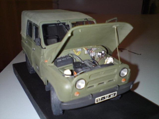 Да, уазик получился что надо!! Не понравилось только подкапотное пространство, капот плоский, бачки не на местах, коммутатор криво весит... короче есть к чему придраться