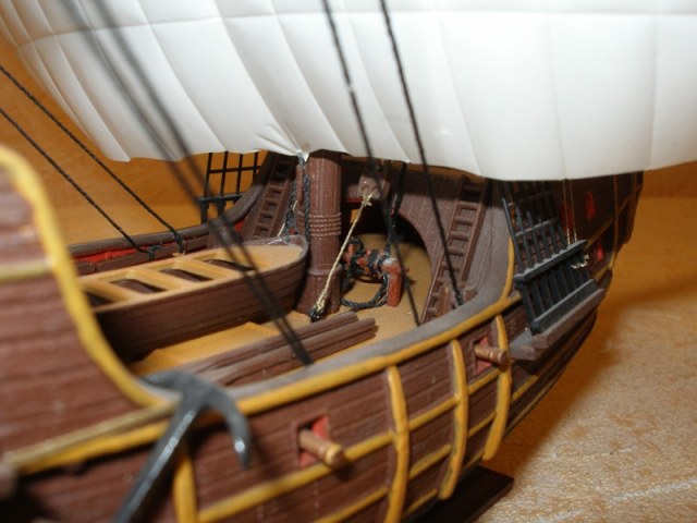 Блоки... ну да бог с ними. Слава богу, что производитель их вообще дал в наборе, а автор правильно использовал.... На некоторую их "немасштабность" "закрываю глаза" (коллеги, видели вы б мои самодельные на бригантине, меня бы поняли). Тут, я думаю дело опыта и у автора все еще впереди.