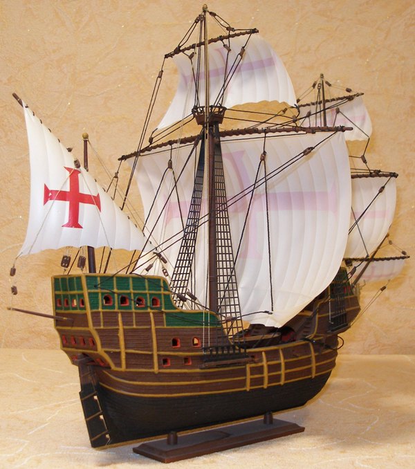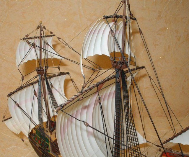 Хорошая ссылка- мне понравился этот вариант,похоже кто-то "попилил" либо Габриэля ,либо Санта-Марию...хотя может и ошибаюсь,обводы корпуса ниже уровня палубных надстроек оч. похожи...про надутые паруса -можно глянуть здесь: http://scalemodels.ru/modules/forum/viewtopic_t_2022_start_60.html и просмотреть встречающиеся ссылки...