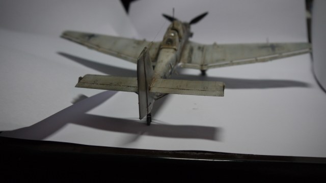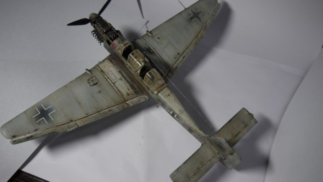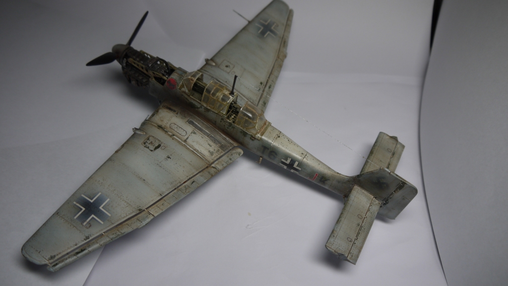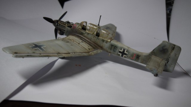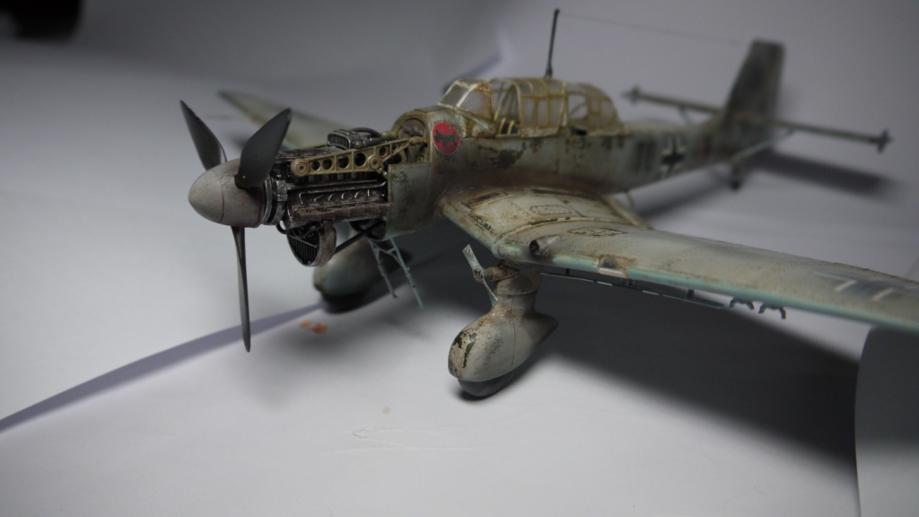 Модель понравилась,хотя на последнем фото представлена модификация "D",а не"В",1./StG2.Эта эскадра действовала на Восточном фронте,поэтому не хватает жёлтой полосы за крестом,на фюзеляже,на ней располагалась буква "K".Лопасти винта окрашивались в чёрно-зелёный цвет. Про фонарь и двигатель уже сказали.Но и в таком исполнении модель смотрится,успехов!