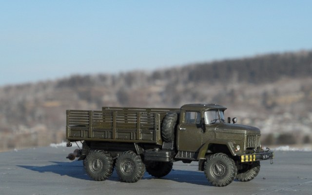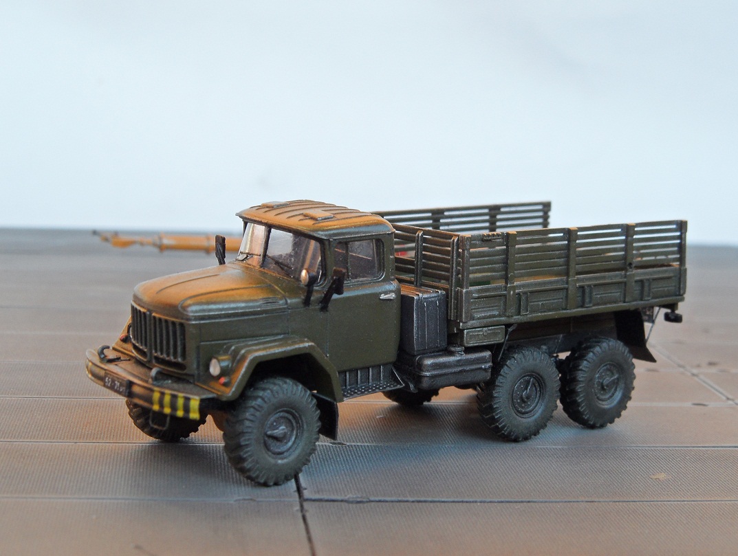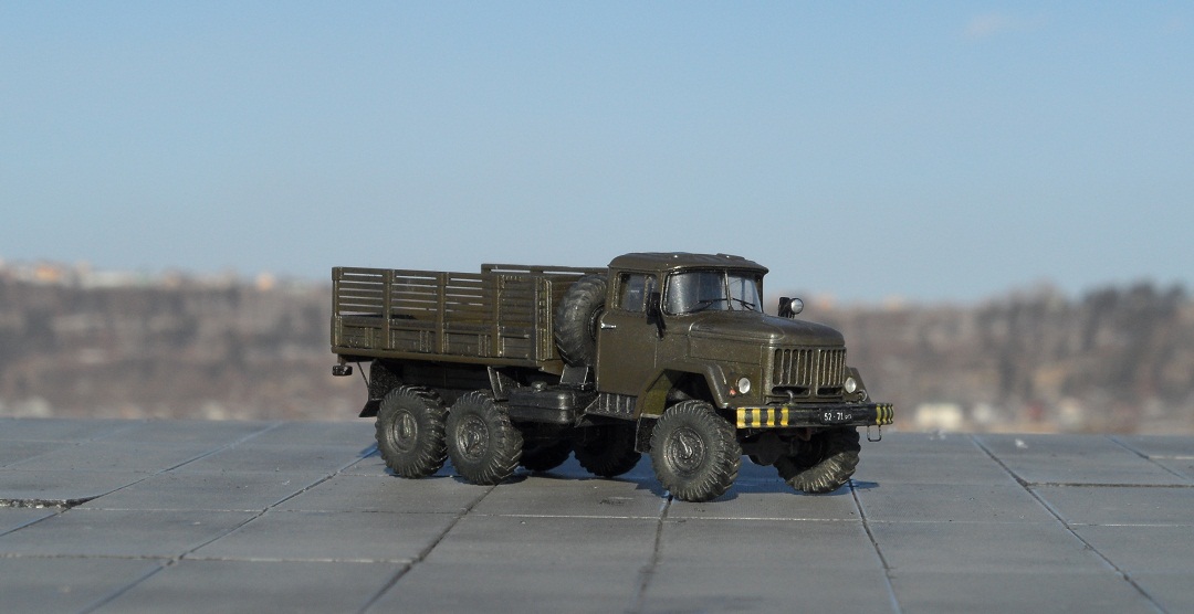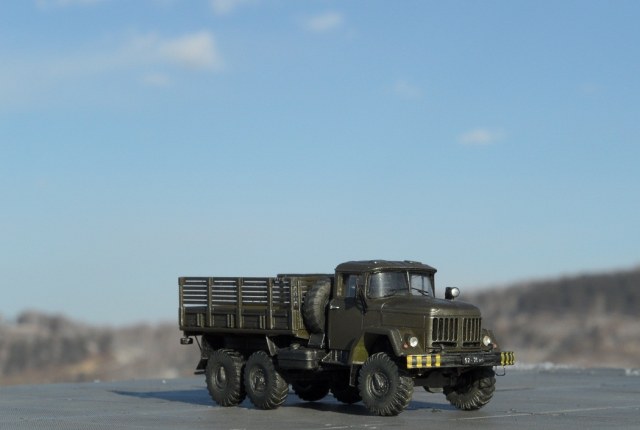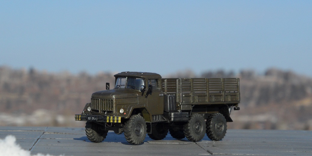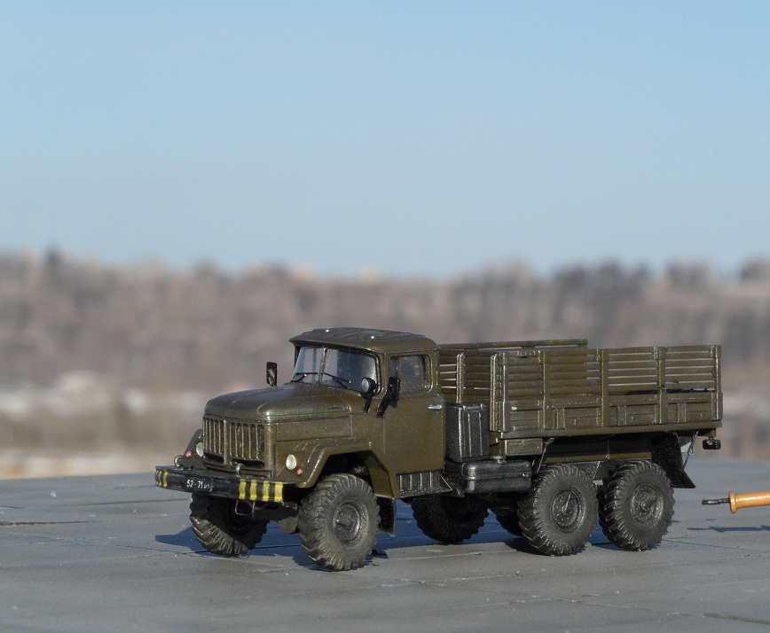Привет всем, представляю модель автомобиля зил 131, идея постройки этого Зила возникла после посещения авиабазы "Белая", на взлетной плосе выстроилась шеренга техники- АПА, Прожекторы зил 130, Азотки, ТЗ, даже тягач краз, а этот "маленький " Зилок наводил суету, вот он едет и везет лестницы для подъема в кабину, вот он летит обратно и через пару минут тащит водило, затем прицепляется к ан 30, и тащит его к шеренге самолетов. Потом катает приехавших на праздник детей, за рулем солдат срочник. Такой вот он труженник ), пока краз стоит понимаеш, он его работу делает. В процессе постройки постарался придать ему сходство с прототипом, единственное- у того Зила борта невысокие. Грязнить его нестал, там где трудится этот зил все чисто, да и вообще вся техника хоть и не новая , но находится в отличном покрайней мере внешнем состоянии,( кое какие грузовики блестят свежей краской и камо),думаю и внутреннем, солдаты аккуратно относятся к технике. Из доработок если таковыми их можно назвать -замена остекления кабины, дворники, поручни из проволоки, фары ЭЛЬФ, углубил диски все, сточил брызговики, бревно между передними и боковыми стеклами ). Для того чтоб придать атмосферу авиабазы сделал по памяти и фото водило от ан 30- 12, - вообще на "Белой" практически все водила самодельные, каких только нет. Теперь осталось собрать ан 12 , коробка лежит , правда в качестве тягача придется где то найти Краз- может есть у кого на продажу?Ну впринципе и все, приятного просмотра.