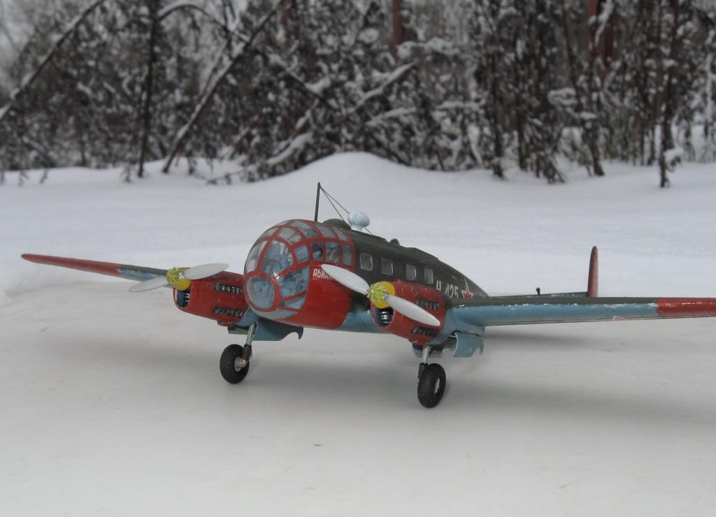 Да...если б не красный цвет, то было б достовернее. Если в качестве прототипа рассматривать всем известное фото борта "Н-376", то он скорее всего был выкрашен в советских авиамастерских в АМТ-11 или АМТ-12, на капотах возможно сохранилась немецкая RLM71. Красная краска в 40-х наверно еще не использовалась широко.