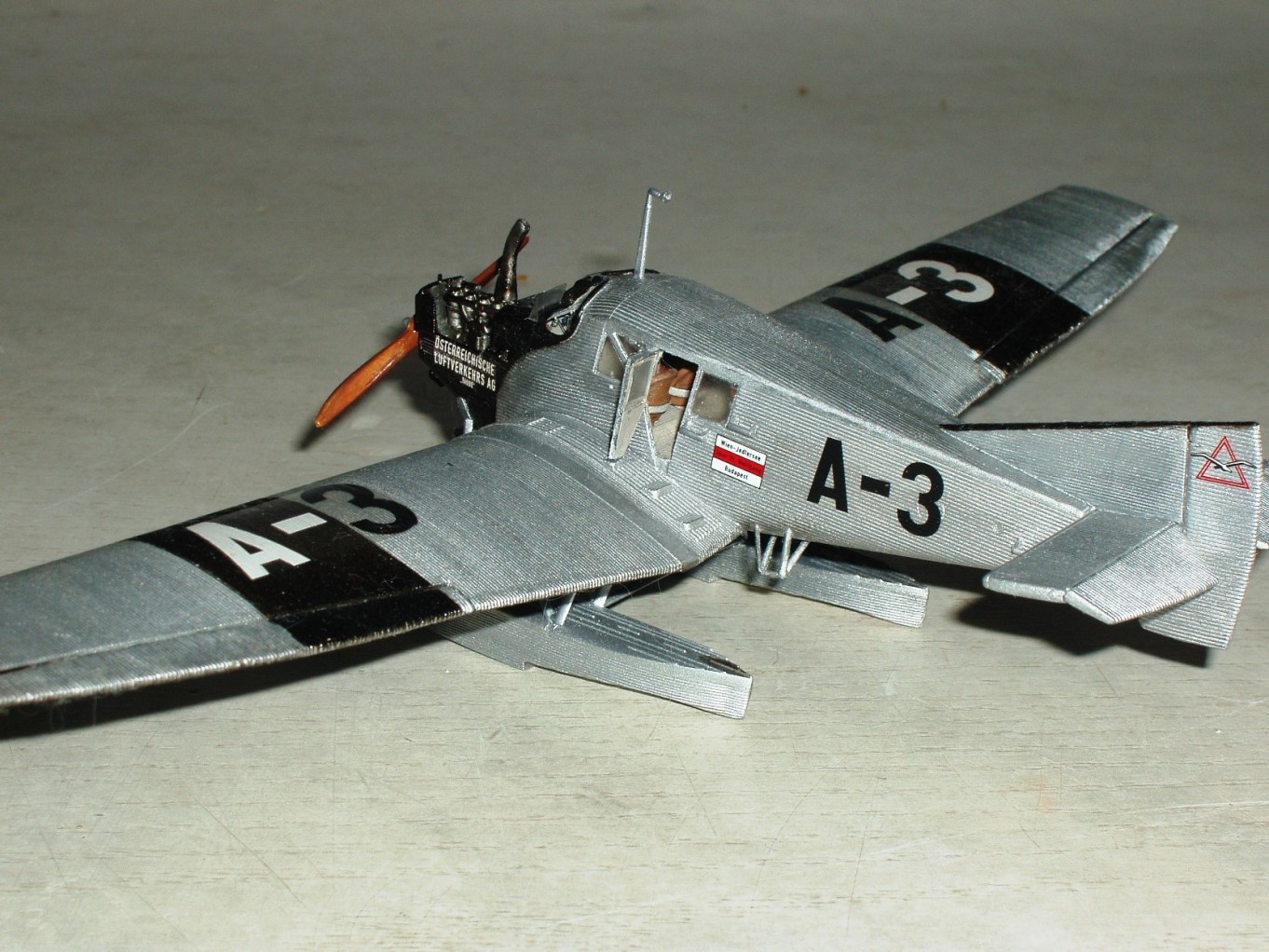 Приветствую уважаемых Каропчан. Предлагаю вашему вниманию модель Junkers F-13 - первый самолёт, изначально создававшийся как пассажирский. По сборке проблем особых не было. Добавил от себя подвижные элероны ,рули высоты и поворота, подвижную дверь салона, снимающийся капот, козырьки из упаковочного пластика. Двигатель переделан из роденовского (для Альбатроса), у них одна база.Окраска-нитра ,по серебрянке постарался воспроизвести старение( окисление ) во впадинах гофры,на Ю-52 у меня получилось, здесь –не очень, возможно причина в разном пластике. Серебрение декалей побороть не смог, хотя старался. Думаю, кто будет собирать эту машину учтёт мои ошибки. Спасибо!
