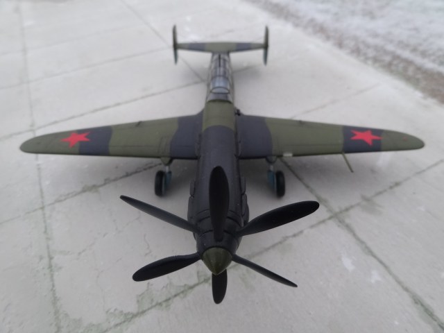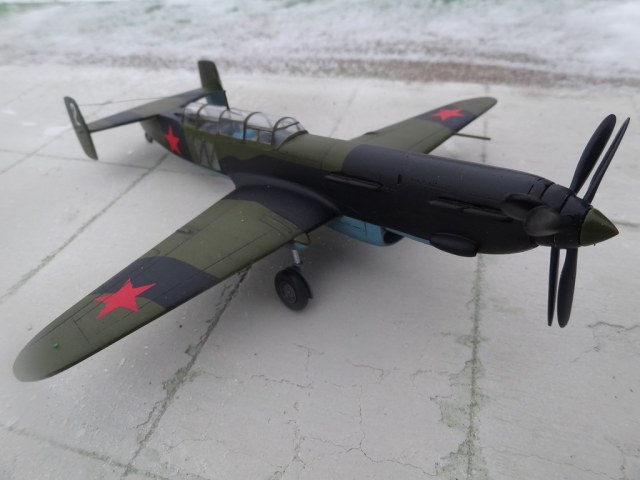 Небольшое отступление: так как данный самолет, как проект, был закрыт, он не имел даже ОЗ, и был покрашен в серокоричневый цвет. Мы решили сделать его так, как-будто бы он пошел в серию. Покрасили в один из камо тех годов, верх АМТ 4 и АМТ 6, низ АМТ 7. На наш взгляд, получилось удачно.