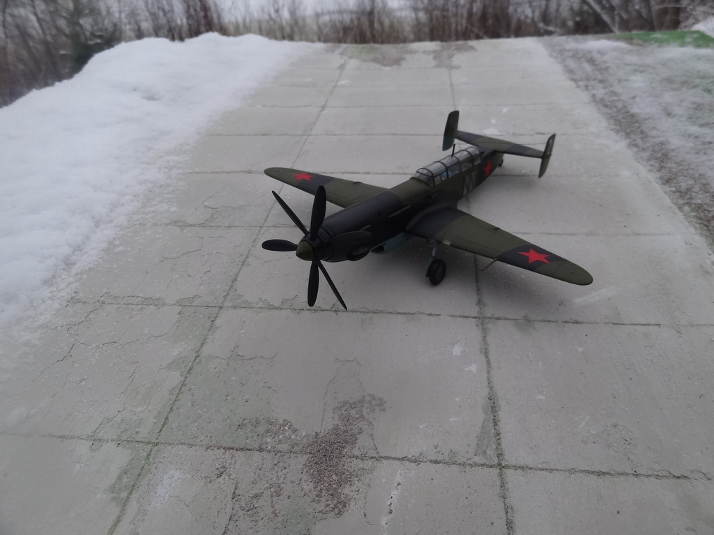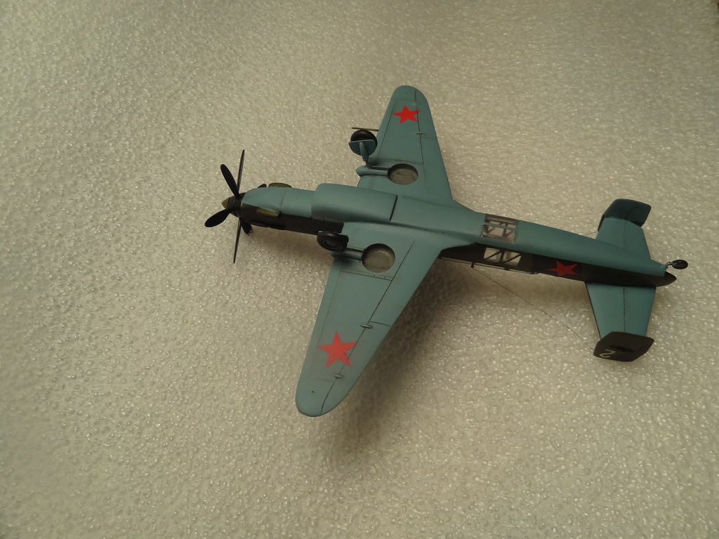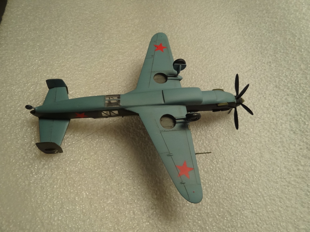 У данного самолета было несколько модификаций. Мы долго думали каким его делать, хотели именно бомбером, НО отказались из-за 2-ух моментов: 1- незнали и не нашли как правильно крепятся бомбы! (хотя они у нас есть, 4шт. из смолы) Как они загружались, мы выяснили - очень интересно, они грузились с помощью крана-лебедки прямо в кабину, через верх!!!??? А вот как крепились там внутри, не нашли. И 2-ой момент, бомбер должен быть с пулеметом в задней части фонаря. Там должен быть ШКАС, но у нас его не было, заказывали пару раз от Miniworld, месяц почти ждали, но так и не пришел...!!! Поэтому выбрали другую модификацию, высотный разведчик, и поставили кислородные баллоны!