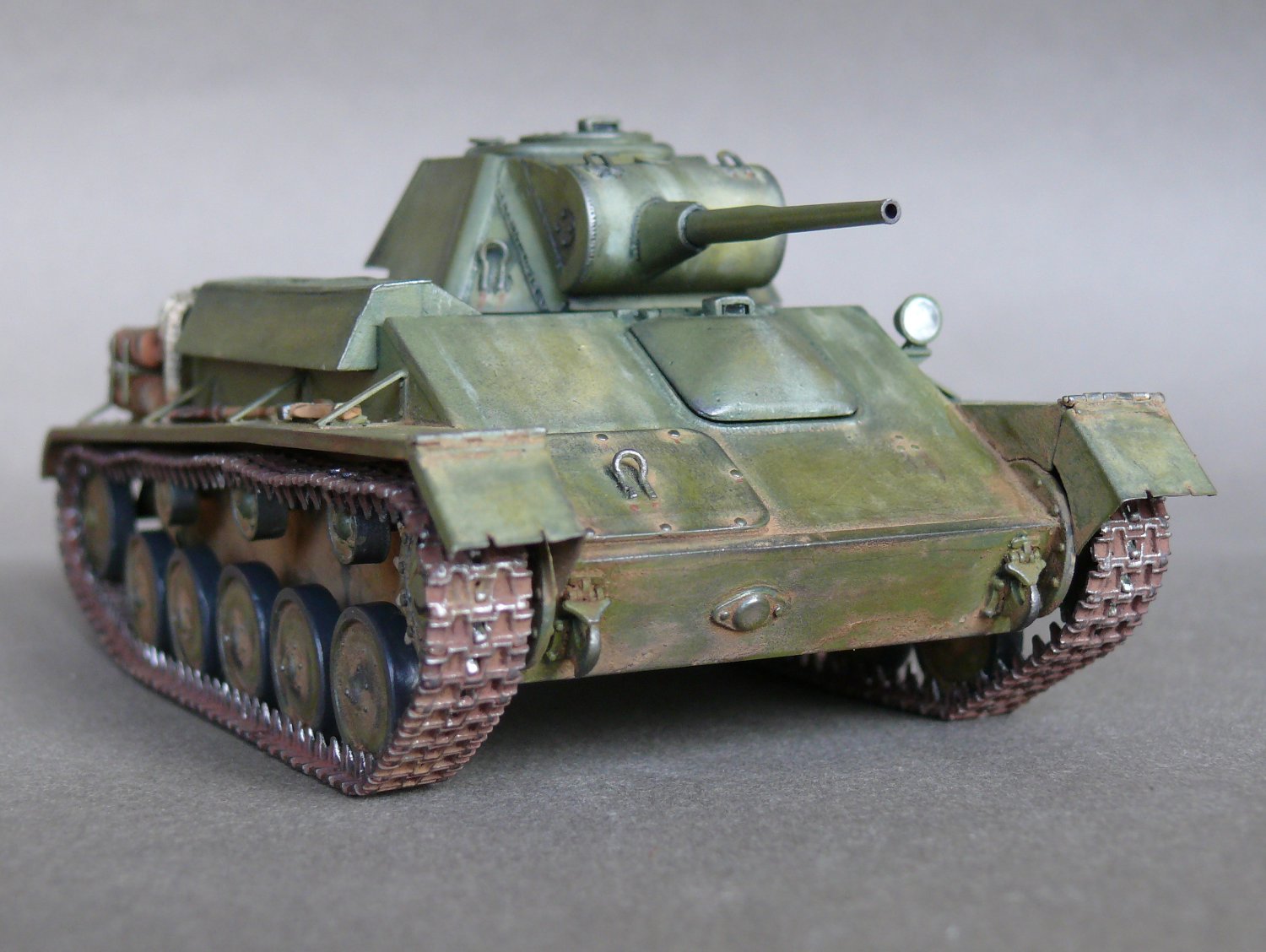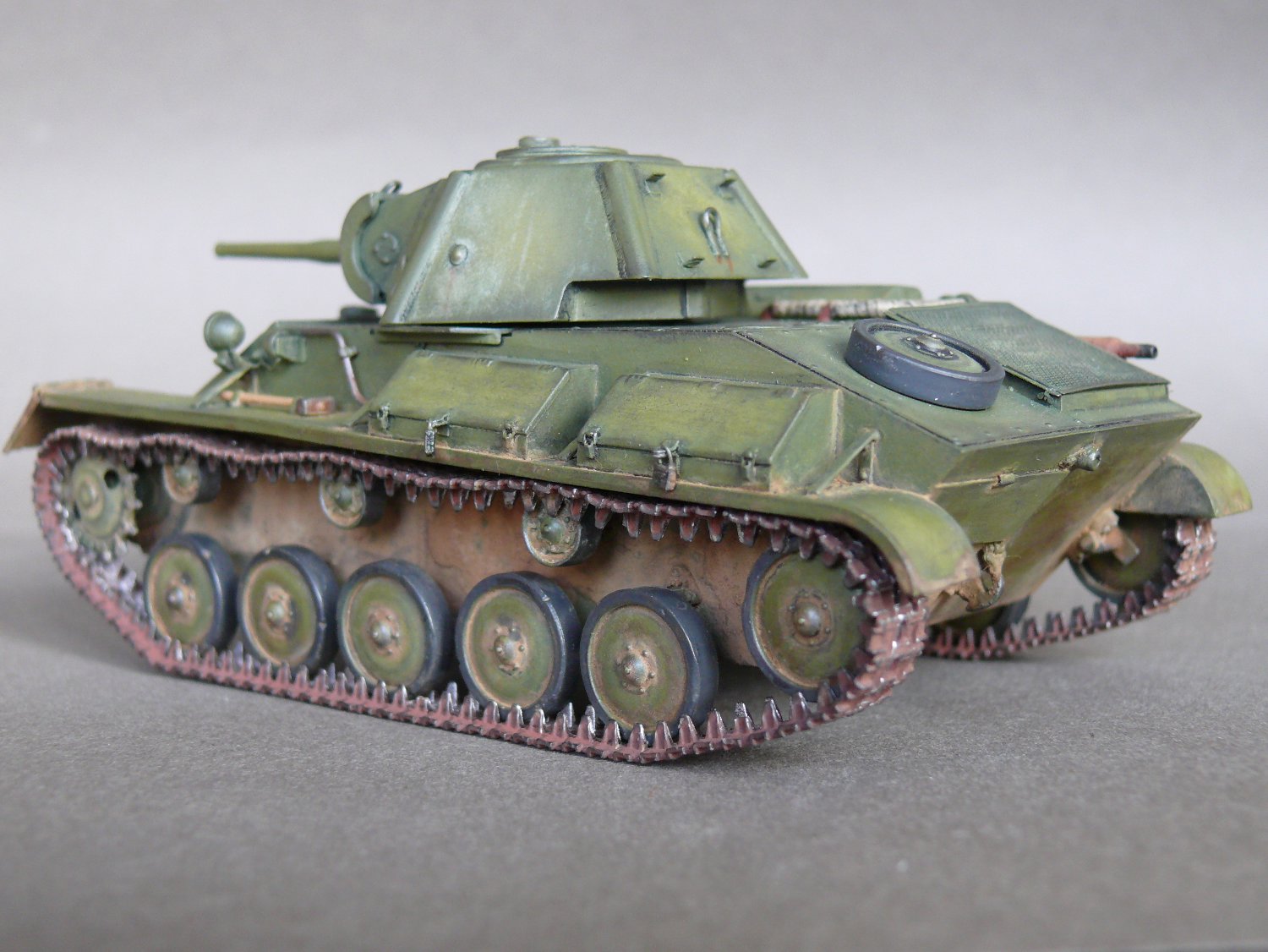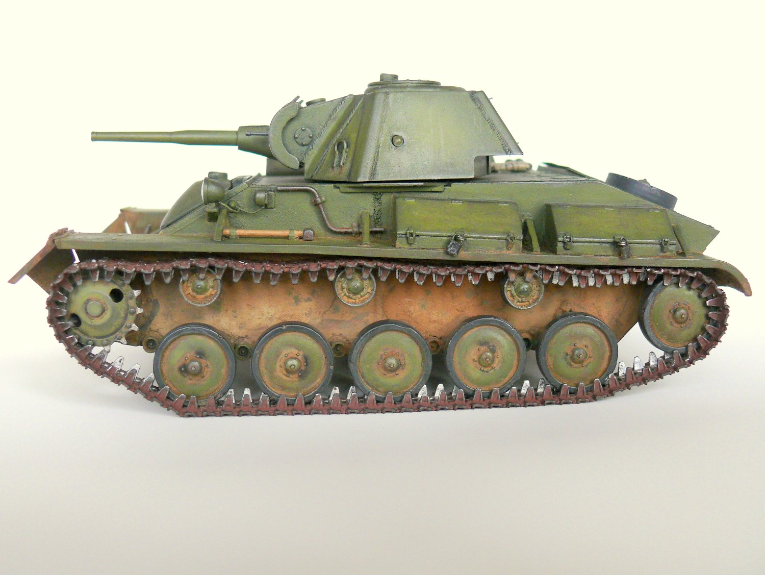 Наконец-то модель-копия, а не нечто по мотивам Т-70! А то последнее время модно стало на сайте "я ничего по матчасти не дорабатывал,(доверился производителю, отрабатывал технологию покраски, не люблю считать заклёпки и далее по списку)". А катки родные? Гусеница отменная!