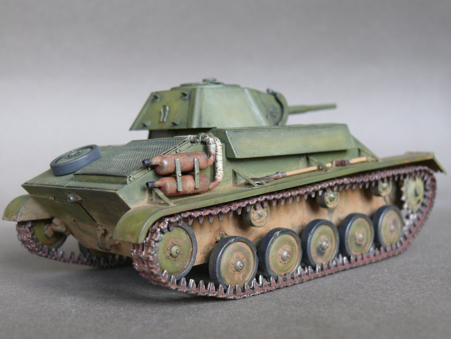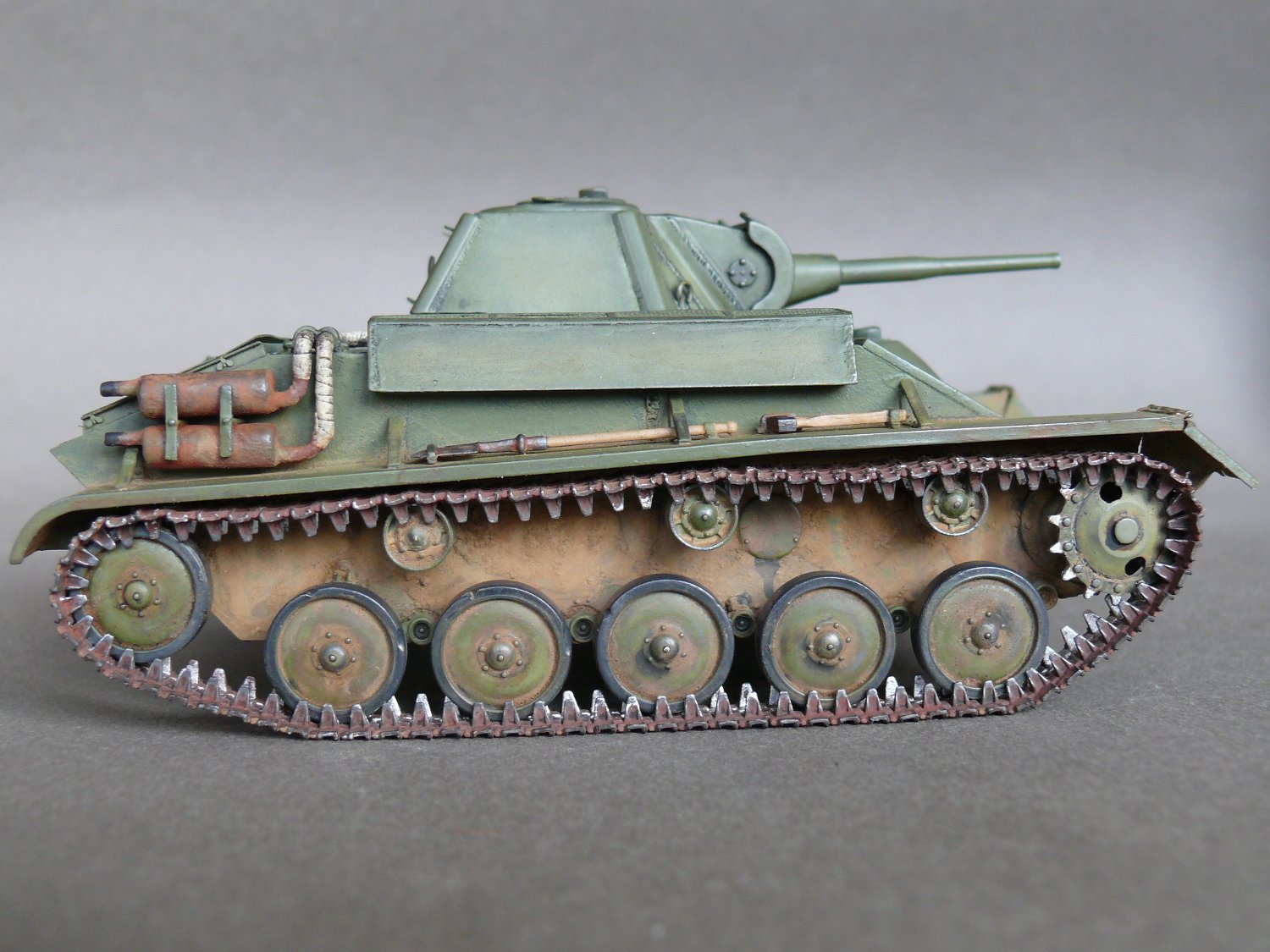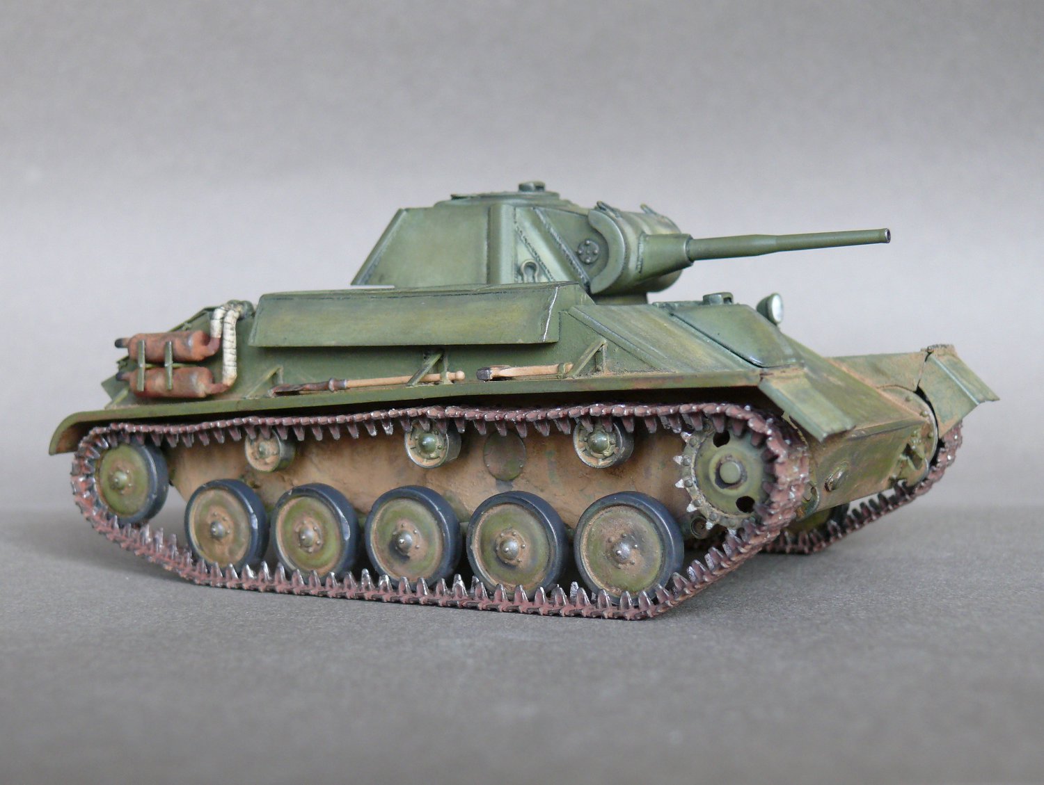 Наконец-то модель-копия, а не нечто по мотивам Т-70! А то последнее время модно стало на сайте "я ничего по матчасти не дорабатывал,(доверился производителю, отрабатывал технологию покраски, не люблю считать заклёпки и далее по списку)". А катки родные? Гусеница отменная!