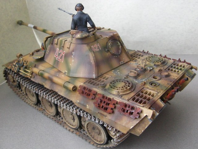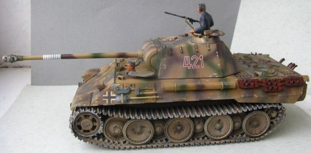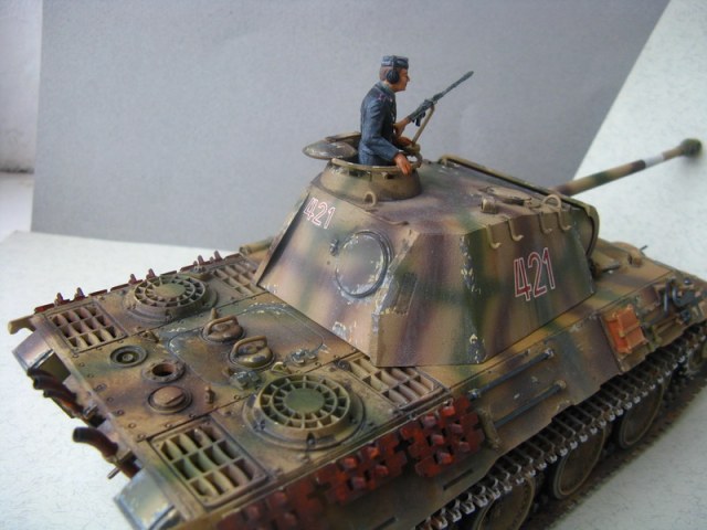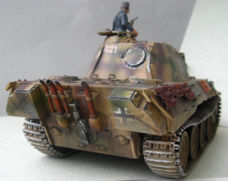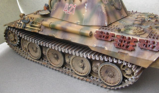 Неплохая в общем-то "Пантерка". Про сколы сказали, и ещё вот запасные траки какие-то слишком ржавые и "дубовые".